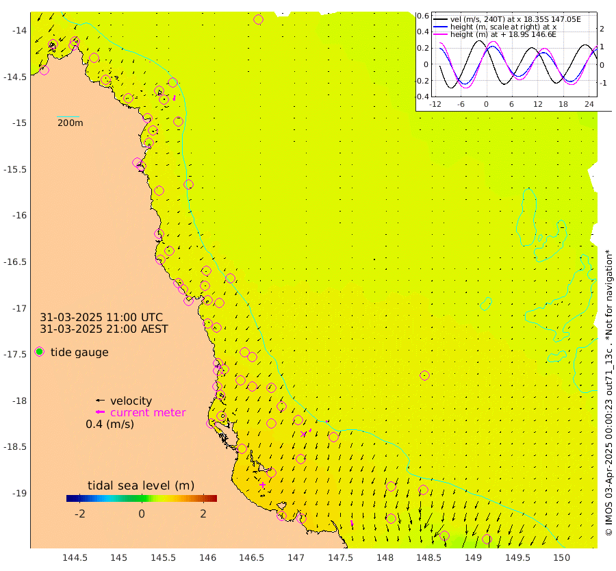 1cm/s 145T +11cm/s rms + 4cm/s -61T. GBRLSL 354m 24cm/s -169T +15cm/s rms + 2cm/s -84T. GBRLSH 32m 15cm/s -155T +15cm/s rms + 5cm/s -155T. GBRPPS 72m 7cm/s -147T +17cm/s rms + 13cm/s 115T. GBRMYR 223m 24cm/s 167T +18cm/s rms + 0cm/s -9T. NRSYON 29m 62cm Osprey Reef - West 61cm Stanley Island 54cm Pipon Islands 55cm Cape Melville 64cm Munro Reef 65cm Leggatt Island 71cm Normanby River 59cm Carter Reef 58cm Lizard Island (QLD) 58cm East Petherbridge Island 54cm North Direction Island 65cm Cape Flattery 66cm Ribbon Reef No.9 64cm Low Wooded Island 52cm Cape Bedford 37cm Endeavour River North 63cm Cooktown 65cm Cruiser Passage 65cm East Hope Island 46cm Bailay Creek 60cm Low Islets 68cm Port Douglas 71cm Palm Cove 70cm Yorkeys Knob 61cm Michaelmas Cay 63cm Euston Reef 70cm Cairns 70cm Green Island 74cm Fitzroy Island 69cm Sudbury Cay 65cm High Island 65cm Russell Island 68cm Peart Reef 68cm Nathan Reef 68cm Mourilyan Harbour 69cm Cowley Beach 54cm North Barnard Island 74cm Eddy Reef 88cm Beaver Reef 71cm Unnamed Reef No. 1 67cm Flinders Reef 73cm Clump Point 73cm Dunk Island 63cm Barnett Patches 78cm Goold Island 78cm Cardwell 77cm Britomart Reef 67cm Pith Reef 72cm Dip Reef 79cm Lucinda (Offshore) 64cm John Brewer Reef 84cm Albino Rock 61cm Shrimp Reef 67cm Jaguar Reef 85cm Townsville 80cm Cape Ferguson 50cm Stanley Reef 46cm Wallaby Reef 58cm Kennedy Reef