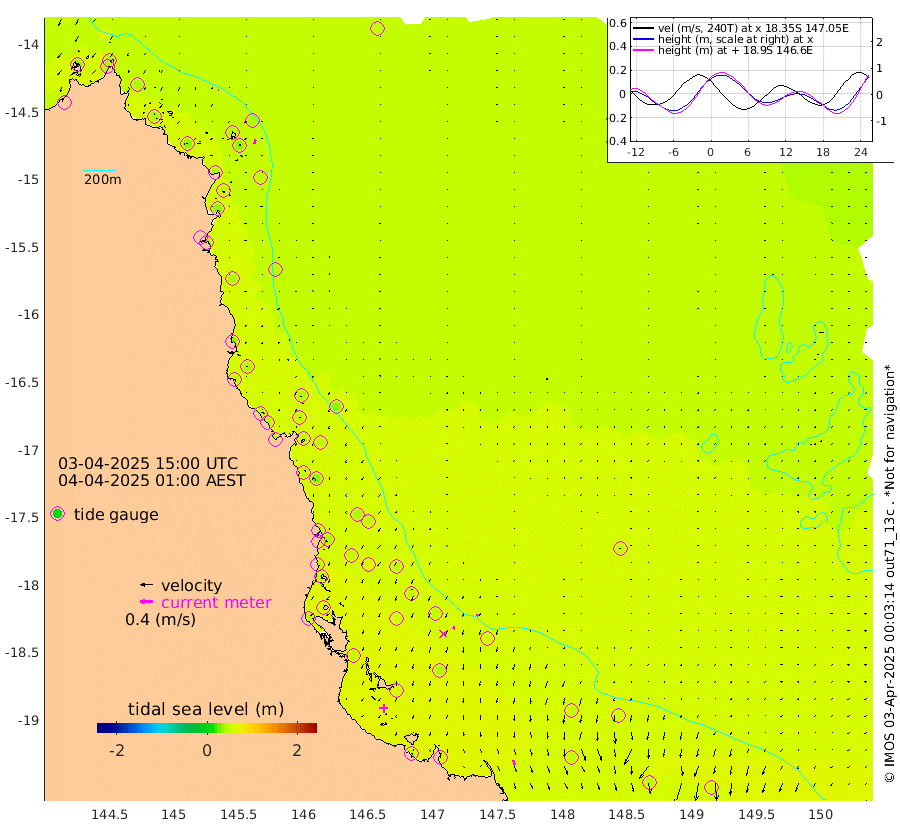 1cm/s -67T +11cm/s rms + 4cm/s -61T. GBRLSL 354m 14cm/s -170T +15cm/s rms + 2cm/s -84T. GBRLSH 32m 10cm/s -155T +15cm/s rms + 5cm/s -155T. GBRPPS 72m 6cm/s -140T +17cm/s rms + 13cm/s 115T. GBRMYR 223m 17cm/s 162T +18cm/s rms + 0cm/s -9T. NRSYON 29m 47cm Osprey Reef - West 34cm Stanley Island 40cm Pipon Islands 38cm Cape Melville 41cm Munro Reef 42cm Leggatt Island 38cm Normanby River 39cm Carter Reef 44cm Lizard Island (QLD) 30cm East Petherbridge Island 34cm North Direction Island 41cm Cape Flattery 45cm Ribbon Reef No.9 47cm Low Wooded Island 31cm Cape Bedford 35cm Endeavour River North 44cm Cooktown 47cm Cruiser Passage 44cm East Hope Island 33cm Bailay Creek 40cm Low Islets 46cm Port Douglas 50cm Palm Cove 51cm Yorkeys Knob 41cm Michaelmas Cay 35cm Euston Reef 47cm Cairns 47cm Green Island 51cm Fitzroy Island 48cm Sudbury Cay 50cm High Island 37cm Russell Island 44cm Peart Reef 48cm Nathan Reef 48cm Mourilyan Harbour 46cm Cowley Beach 43cm North Barnard Island 52cm Eddy Reef 60cm Beaver Reef 52cm Unnamed Reef No. 1 49cm Flinders Reef 51cm Clump Point 51cm Dunk Island 48cm Barnett Patches 55cm Goold Island 50cm Cardwell 54cm Britomart Reef 50cm Pith Reef 56cm Dip Reef 52cm Lucinda (Offshore) 42cm John Brewer Reef 55cm Albino Rock 50cm Shrimp Reef 54cm Jaguar Reef 55cm Townsville 55cm Cape Ferguson 49cm Stanley Reef 49cm Wallaby Reef 60cm Kennedy Reef