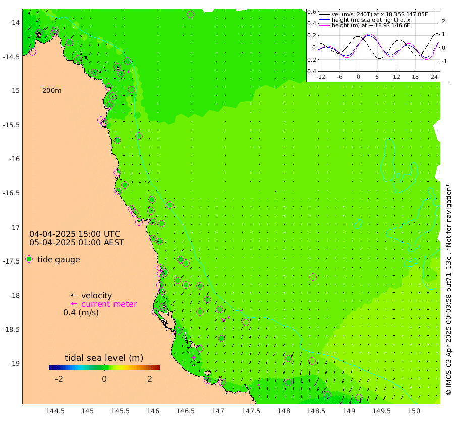 1cm/s -73T +11cm/s rms + 4cm/s -61T. GBRLSL 354m 15cm/s -164T +15cm/s rms + 2cm/s -84T. GBRLSH 32m 14cm/s -139T +15cm/s rms + 5cm/s -155T. GBRPPS 72m 7cm/s -134T +17cm/s rms + 13cm/s 115T. GBRMYR 223m 13cm/s -171T +18cm/s rms + 0cm/s -9T. NRSYON 29m 20cm Osprey Reef - West -1cm Stanley Island 7cm Pipon Islands 6cm Cape Melville 6cm Munro Reef 7cm Leggatt Island 0cm Normanby River 6cm Carter Reef 12cm Lizard Island (QLD) 0cm East Petherbridge Island 5cm North Direction Island 9cm Cape Flattery 16cm Ribbon Reef No.9 18cm Low Wooded Island 4cm Cape Bedford 19cm Endeavour River North 12cm Cooktown 20cm Cruiser Passage 14cm East Hope Island 4cm Bailay Creek 9cm Low Islets 13cm Port Douglas 18cm Palm Cove 17cm Yorkeys Knob 11cm Michaelmas Cay 15cm Euston Reef 13cm Cairns 18cm Green Island 18cm Fitzroy Island 17cm Sudbury Cay 18cm High Island 12cm Russell Island 11cm Peart Reef 16cm Nathan Reef 14cm Mourilyan Harbour 13cm Cowley Beach 4cm North Barnard Island 21cm Eddy Reef 16cm Beaver Reef 21cm Unnamed Reef No. 1 24cm Flinders Reef 15cm Clump Point 13cm Dunk Island 17cm Barnett Patches 16cm Goold Island 5cm Cardwell 19cm Britomart Reef 21cm Pith Reef 27cm Dip Reef 12cm Lucinda (Offshore) 2cm John Brewer Reef 18cm Albino Rock 17cm Shrimp Reef 26cm Jaguar Reef 13cm Townsville 15cm Cape Ferguson 8cm Stanley Reef 9cm Wallaby Reef 23cm Kennedy Reef