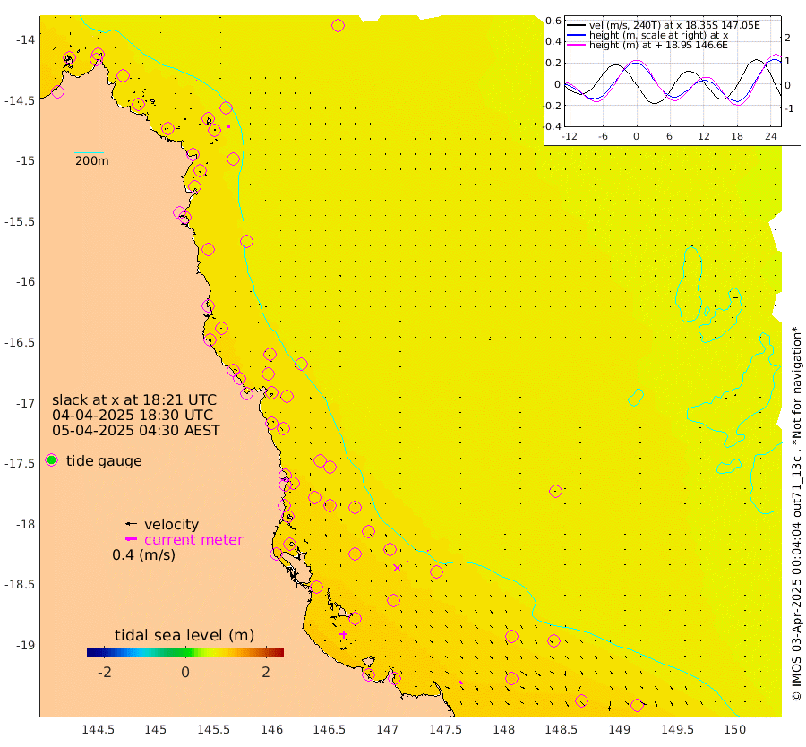 1cm/s -36T +11cm/s rms + 4cm/s -61T. GBRLSL 354m 11cm/s -180T +15cm/s rms + 2cm/s -84T. GBRLSH 32m 7cm/s 155T +15cm/s rms + 5cm/s -155T. GBRPPS 72m 3cm/s 171T +17cm/s rms + 13cm/s 115T. GBRMYR 223m 14cm/s 143T +18cm/s rms + 0cm/s -9T. NRSYON 29m 77cm Osprey Reef - West 91cm Stanley Island 72cm Pipon Islands 85cm Cape Melville 88cm Munro Reef 88cm Leggatt Island 93cm Normanby River 89cm Carter Reef 90cm Lizard Island (QLD) 85cm East Petherbridge Island 84cm North Direction Island 85cm Cape Flattery 82cm Ribbon Reef No.9 90cm Low Wooded Island 80cm Cape Bedford 51cm Endeavour River North 88cm Cooktown 82cm Cruiser Passage 91cm East Hope Island 82cm Bailay Creek 84cm Low Islets 90cm Port Douglas 92cm Palm Cove 95cm Yorkeys Knob 85cm Michaelmas Cay 72cm Euston Reef 92cm Cairns 90cm Green Island 88cm Fitzroy Island 89cm Sudbury Cay 96cm High Island 85cm Russell Island 95cm Peart Reef 91cm Nathan Reef 92cm Mourilyan Harbour 93cm Cowley Beach 97cm North Barnard Island 83cm Eddy Reef 118cm Beaver Reef 91cm Unnamed Reef No. 1 80cm Flinders Reef 97cm Clump Point 102cm Dunk Island 95cm Barnett Patches 106cm Goold Island 106cm Cardwell 102cm Britomart Reef 89cm Pith Reef 87cm Dip Reef 104cm Lucinda (Offshore) 102cm John Brewer Reef 99cm Albino Rock 96cm Shrimp Reef 86cm Jaguar Reef 110cm Townsville 106cm Cape Ferguson 106cm Stanley Reef 96cm Wallaby Reef 93cm Kennedy Reef