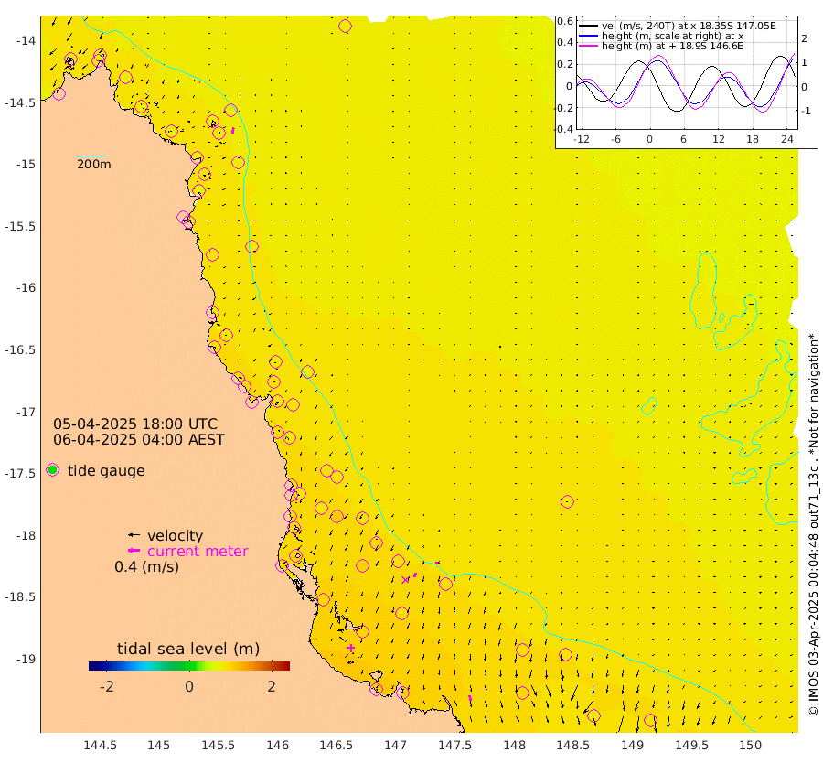 1cm/s -55T +11cm/s rms + 4cm/s -61T. GBRLSL 354m 22cm/s -169T +15cm/s rms + 2cm/s -84T. GBRLSH 32m 14cm/s -161T +15cm/s rms + 5cm/s -155T. GBRPPS 72m 7cm/s -153T +17cm/s rms + 13cm/s 115T. GBRMYR 223m 18cm/s 166T +18cm/s rms + 0cm/s -9T. NRSYON 29m 76cm Osprey Reef - West 77cm Stanley Island 67cm Pipon Islands 74cm Cape Melville 75cm Munro Reef 77cm Leggatt Island 80cm Normanby River 77cm Carter Reef 82cm Lizard Island (QLD) 74cm East Petherbridge Island 76cm North Direction Island 77cm Cape Flattery 78cm Ribbon Reef No.9 89cm Low Wooded Island 72cm Cape Bedford 52cm Endeavour River North 81cm Cooktown 80cm Cruiser Passage 85cm East Hope Island 72cm Bailay Creek 77cm Low Islets 84cm Port Douglas 89cm Palm Cove 90cm Yorkeys Knob 77cm Michaelmas Cay 74cm Euston Reef 86cm Cairns 87cm Green Island 82cm Fitzroy Island 84cm Sudbury Cay 92cm High Island 82cm Russell Island 88cm Peart Reef 86cm Nathan Reef 85cm Mourilyan Harbour 88cm Cowley Beach 80cm North Barnard Island 81cm Eddy Reef 109cm Beaver Reef 89cm Unnamed Reef No. 1 80cm Flinders Reef 91cm Clump Point 94cm Dunk Island 91cm Barnett Patches 99cm Goold Island 93cm Cardwell 100cm Britomart Reef 87cm Pith Reef 88cm Dip Reef 96cm Lucinda (Offshore) 87cm John Brewer Reef 96cm Albino Rock 90cm Shrimp Reef 87cm Jaguar Reef 102cm Townsville 100cm Cape Ferguson 91cm Stanley Reef 79cm Wallaby Reef 87cm Kennedy Reef