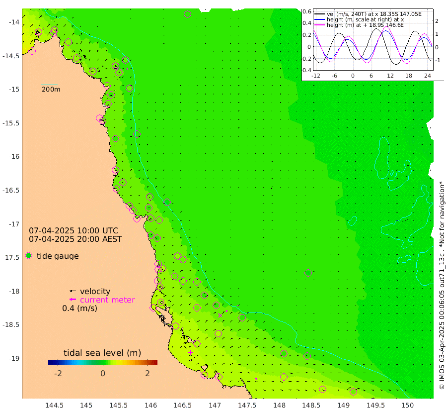 1cm/s 137T +11cm/s rms + 4cm/s -61T. GBRLSL 354m 6cm/s 26T +15cm/s rms + 2cm/s -84T. GBRLSH 32m 11cm/s 58T +15cm/s rms + 5cm/s -155T. GBRPPS 72m 5cm/s 69T +17cm/s rms + 13cm/s 115T. GBRMYR 223m 12cm/s 108T +18cm/s rms + 0cm/s -9T. NRSYON 29m 18cm Osprey Reef - West 40cm Stanley Island 38cm Pipon Islands 29cm Cape Melville 33cm Munro Reef 35cm Leggatt Island 53cm Normanby River 27cm Carter Reef 24cm Lizard Island (QLD) 33cm East Petherbridge Island 26cm North Direction Island 30cm Cape Flattery 24cm Ribbon Reef No.9 20cm Low Wooded Island 25cm Cape Bedford 11cm Endeavour River North 26cm Cooktown 19cm Cruiser Passage 16cm East Hope Island 26cm Bailay Creek 23cm Low Islets 28cm Port Douglas 25cm Palm Cove 26cm Yorkeys Knob 27cm Michaelmas Cay 11cm Euston Reef 30cm Cairns 21cm Green Island 23cm Fitzroy Island 23cm Sudbury Cay 21cm High Island 22cm Russell Island 30cm Peart Reef 24cm Nathan Reef 29cm Mourilyan Harbour 31cm Cowley Beach 41cm North Barnard Island 23cm Eddy Reef 37cm Beaver Reef 23cm Unnamed Reef No. 1 13cm Flinders Reef 32cm Clump Point 38cm Dunk Island 22cm Barnett Patches 37cm Goold Island 52cm Cardwell 28cm Britomart Reef 17cm Pith Reef 16cm Dip Reef 42cm Lucinda (Offshore) 41cm John Brewer Reef 38cm Albino Rock 20cm Shrimp Reef 16cm Jaguar Reef 46cm Townsville 40cm Cape Ferguson 39cm Stanley Reef 41cm Wallaby Reef 27cm Kennedy Reef