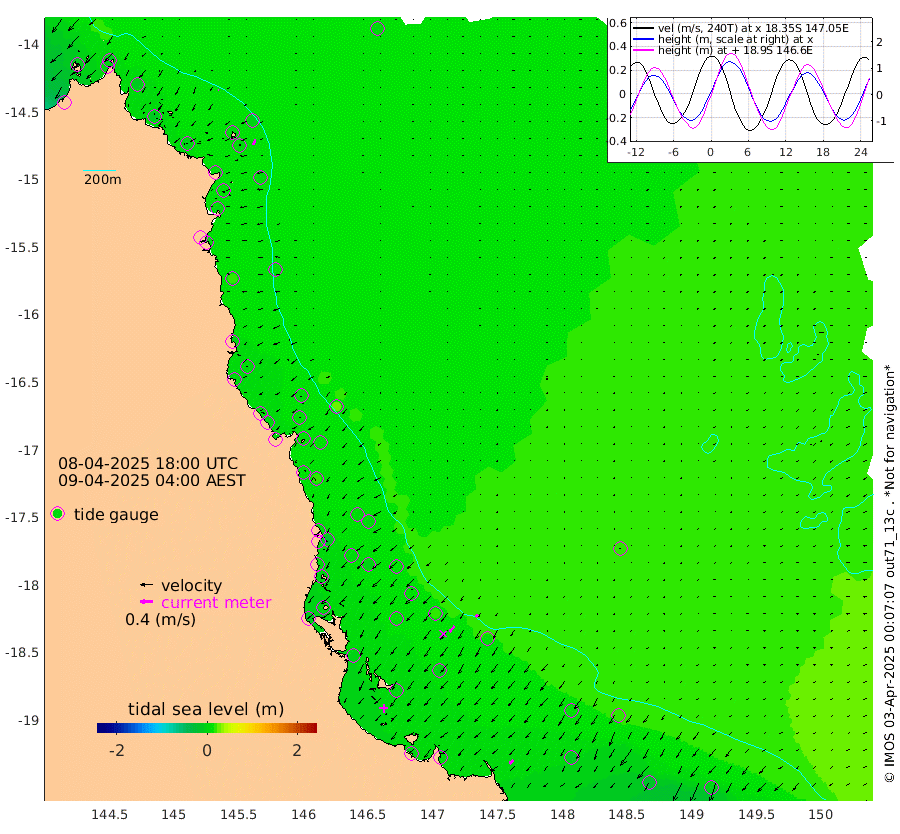 1cm/s -72T +11cm/s rms + 4cm/s -61T. GBRLSL 354m 18cm/s -159T +15cm/s rms + 2cm/s -84T. GBRLSH 32m 23cm/s -138T +15cm/s rms + 5cm/s -155T. GBRPPS 72m 10cm/s -139T +17cm/s rms + 13cm/s 115T. GBRMYR 223m 15cm/s -133T +18cm/s rms + 0cm/s -9T. NRSYON 29m 5cm Osprey Reef - West -9cm Stanley Island -10cm Pipon Islands -1cm Cape Melville -8cm Munro Reef -10cm Leggatt Island -17cm Normanby River -1cm Carter Reef 3cm Lizard Island (QLD) -1cm East Petherbridge Island 4cm North Direction Island 3cm Cape Flattery 4cm Ribbon Reef No.9 14cm Low Wooded Island 6cm Cape Bedford -2cm Endeavour River North 4cm Cooktown 9cm Cruiser Passage 16cm East Hope Island -2cm Bailay Creek 3cm Low Islets 3cm Port Douglas 8cm Palm Cove 4cm Yorkeys Knob 4cm Michaelmas Cay 28cm Euston Reef 3cm Cairns 13cm Green Island 10cm Fitzroy Island 8cm Sudbury Cay 11cm High Island 18cm Russell Island 4cm Peart Reef 4cm Nathan Reef 2cm Mourilyan Harbour 7cm Cowley Beach -15cm North Barnard Island 5cm Eddy Reef 0cm Beaver Reef 9cm Unnamed Reef No. 1 19cm Flinders Reef 3cm Clump Point -1cm Dunk Island 9cm Barnett Patches 3cm Goold Island -14cm Cardwell 14cm Britomart Reef 15cm Pith Reef 14cm Dip Reef -2cm Lucinda (Offshore) -5cm John Brewer Reef 4cm Albino Rock 12cm Shrimp Reef 17cm Jaguar Reef 0cm Townsville 4cm Cape Ferguson -12cm Stanley Reef -18cm Wallaby Reef -2cm Kennedy Reef