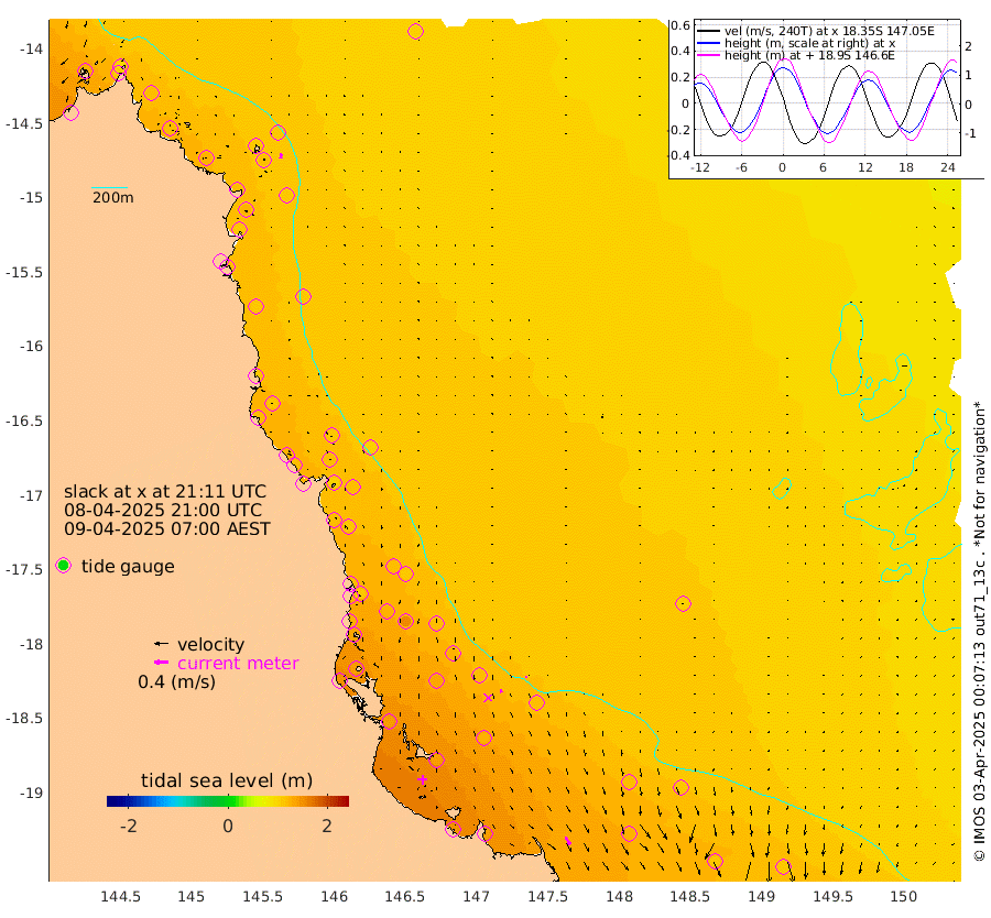 0cm/s -105T +11cm/s rms + 4cm/s -61T. GBRLSL 354m 14cm/s -173T +15cm/s rms + 2cm/s -84T. GBRLSH 32m 9cm/s 162T +15cm/s rms + 5cm/s -155T. GBRPPS 72m 5cm/s -178T +17cm/s rms + 13cm/s 115T. GBRMYR 223m 25cm/s 147T +18cm/s rms + 0cm/s -9T. NRSYON 29m 104cm Osprey Reef - West 121cm Stanley Island 95cm Pipon Islands 107cm Cape Melville 113cm Munro Reef 116cm Leggatt Island 136cm Normanby River 109cm Carter Reef 110cm Lizard Island (QLD) 122cm East Petherbridge Island 114cm North Direction Island 115cm Cape Flattery 111cm Ribbon Reef No.9 126cm Low Wooded Island 109cm Cape Bedford 70cm Endeavour River North 114cm Cooktown 110cm Cruiser Passage 111cm East Hope Island 110cm Bailay Creek 108cm Low Islets 118cm Port Douglas 120cm Palm Cove 119cm Yorkeys Knob 110cm Michaelmas Cay 103cm Euston Reef 121cm Cairns 115cm Green Island 104cm Fitzroy Island 114cm Sudbury Cay 114cm High Island 109cm Russell Island 119cm Peart Reef 111cm Nathan Reef 120cm Mourilyan Harbour 125cm Cowley Beach 112cm North Barnard Island 121cm Eddy Reef 157cm Beaver Reef 119cm Unnamed Reef No. 1 102cm Flinders Reef 127cm Clump Point 130cm Dunk Island 121cm Barnett Patches 138cm Goold Island 145cm Cardwell 131cm Britomart Reef 115cm Pith Reef 116cm Dip Reef 140cm Lucinda (Offshore) 121cm John Brewer Reef 141cm Albino Rock 117cm Shrimp Reef 109cm Jaguar Reef 149cm Townsville 141cm Cape Ferguson 127cm Stanley Reef 112cm Wallaby Reef 112cm Kennedy Reef