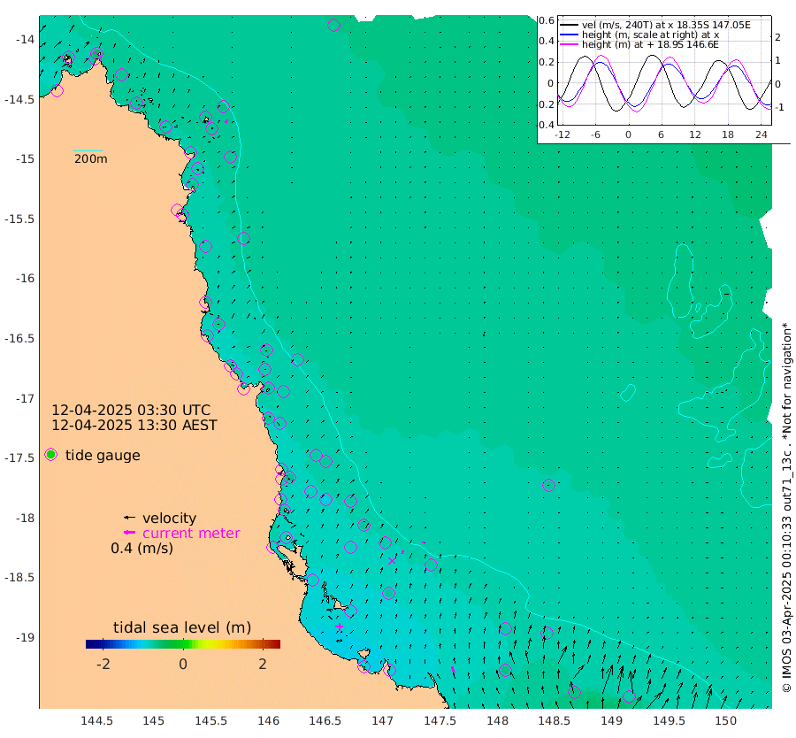 1cm/s -19T +11cm/s rms + 4cm/s -61T. GBRLSL 354m 13cm/s 10T +15cm/s rms + 2cm/s -84T. GBRLSH 32m 12cm/s 14T +15cm/s rms + 5cm/s -155T. GBRPPS 72m 6cm/s 20T +17cm/s rms + 13cm/s 115T. GBRMYR 223m 22cm/s -19T +18cm/s rms + 0cm/s -9T. NRSYON 29m -68cm Osprey Reef - West -74cm Stanley Island -49cm Pipon Islands -68cm Cape Melville -71cm Munro Reef -71cm Leggatt Island -79cm Normanby River -65cm Carter Reef -69cm Lizard Island (QLD) -77cm East Petherbridge Island -72cm North Direction Island -79cm Cape Flattery -72cm Ribbon Reef No.9 -76cm Low Wooded Island -71cm Cape Bedford -44cm Endeavour River North -73cm Cooktown -71cm Cruiser Passage -77cm East Hope Island -58cm Bailay Creek -70cm Low Islets -76cm Port Douglas -78cm Palm Cove -72cm Yorkeys Knob -72cm Michaelmas Cay -82cm Euston Reef -79cm Cairns -76cm Green Island -74cm Fitzroy Island -77cm Sudbury Cay -73cm High Island -76cm Russell Island -75cm Peart Reef -69cm Nathan Reef -77cm Mourilyan Harbour -82cm Cowley Beach -65cm North Barnard Island -83cm Eddy Reef -98cm Beaver Reef -77cm Unnamed Reef No. 1 -75cm Flinders Reef -83cm Clump Point -80cm Dunk Island -73cm Barnett Patches -87cm Goold Island -91cm Cardwell -83cm Britomart Reef -79cm Pith Reef -78cm Dip Reef -90cm Lucinda (Offshore) -75cm John Brewer Reef -95cm Albino Rock -76cm Shrimp Reef -76cm Jaguar Reef -96cm Townsville -91cm Cape Ferguson -66cm Stanley Reef -62cm Wallaby Reef -78cm Kennedy Reef