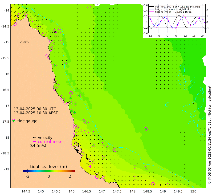 1cm/s -75T +11cm/s rms + 4cm/s -61T. GBRLSL 354m 11cm/s 21T +15cm/s rms + 2cm/s -84T. GBRLSH 32m 14cm/s 54T +15cm/s rms + 5cm/s -155T. GBRPPS 72m 4cm/s 53T +17cm/s rms + 13cm/s 115T. GBRMYR 223m 17cm/s 110T +18cm/s rms + 0cm/s -9T. NRSYON 29m 31cm Osprey Reef - West 40cm Stanley Island 44cm Pipon Islands 37cm Cape Melville 38cm Munro Reef 41cm Leggatt Island 54cm Normanby River 32cm Carter Reef 31cm Lizard Island (QLD) 42cm East Petherbridge Island 35cm North Direction Island 36cm Cape Flattery 32cm Ribbon Reef No.9 35cm Low Wooded Island 32cm Cape Bedford 20cm Endeavour River North 33cm Cooktown 28cm Cruiser Passage 22cm East Hope Island 38cm Bailay Creek 30cm Low Islets 35cm Port Douglas 32cm Palm Cove 29cm Yorkeys Knob 29cm Michaelmas Cay 19cm Euston Reef 37cm Cairns 21cm Green Island 23cm Fitzroy Island 29cm Sudbury Cay 22cm High Island 13cm Russell Island 26cm Peart Reef 26cm Nathan Reef 37cm Mourilyan Harbour 36cm Cowley Beach 38cm North Barnard Island 46cm Eddy Reef 48cm Beaver Reef 32cm Unnamed Reef No. 1 20cm Flinders Reef 39cm Clump Point 37cm Dunk Island 32cm Barnett Patches 40cm Goold Island 57cm Cardwell 30cm Britomart Reef 30cm Pith Reef 31cm Dip Reef 47cm Lucinda (Offshore) 32cm John Brewer Reef 48cm Albino Rock 31cm Shrimp Reef 28cm Jaguar Reef 49cm Townsville 44cm Cape Ferguson 49cm Stanley Reef 54cm Wallaby Reef 50cm Kennedy Reef