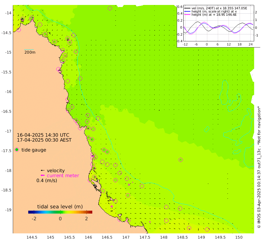 1cm/s -48T +11cm/s rms + 4cm/s -61T. GBRLSL 354m 3cm/s 49T +15cm/s rms + 2cm/s -84T. GBRLSH 32m 5cm/s 72T +15cm/s rms + 5cm/s -155T. GBRPPS 72m 0cm/s 15T +17cm/s rms + 13cm/s 115T. GBRMYR 223m 12cm/s 127T +18cm/s rms + 0cm/s -9T. NRSYON 29m 36cm Osprey Reef - West 35cm Stanley Island 27cm Pipon Islands 36cm Cape Melville 38cm Munro Reef 37cm Leggatt Island 34cm Normanby River 38cm Carter Reef 37cm Lizard Island (QLD) 36cm East Petherbridge Island 36cm North Direction Island 38cm Cape Flattery 37cm Ribbon Reef No.9 40cm Low Wooded Island 35cm Cape Bedford 26cm Endeavour River North 36cm Cooktown 36cm Cruiser Passage 38cm East Hope Island 40cm Bailay Creek 32cm Low Islets 37cm Port Douglas 36cm Palm Cove 31cm Yorkeys Knob 37cm Michaelmas Cay 39cm Euston Reef 38cm Cairns 32cm Green Island 31cm Fitzroy Island 37cm Sudbury Cay 34cm High Island 23cm Russell Island 27cm Peart Reef 28cm Nathan Reef 40cm Mourilyan Harbour 39cm Cowley Beach 41cm North Barnard Island 47cm Eddy Reef 50cm Beaver Reef 38cm Unnamed Reef No. 1 33cm Flinders Reef 40cm Clump Point 40cm Dunk Island 38cm Barnett Patches 42cm Goold Island 48cm Cardwell 35cm Britomart Reef 42cm Pith Reef 39cm Dip Reef 44cm Lucinda (Offshore) 32cm John Brewer Reef 47cm Albino Rock 47cm Shrimp Reef 46cm Jaguar Reef 45cm Townsville 44cm Cape Ferguson 53cm Stanley Reef 61cm Wallaby Reef 62cm Kennedy Reef