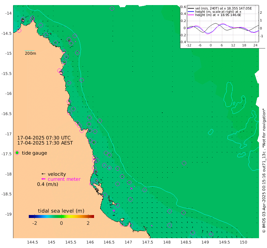 1cm/s 123T +11cm/s rms + 4cm/s -61T. GBRLSL 354m 4cm/s -136T +15cm/s rms + 2cm/s -84T. GBRLSH 32m 6cm/s -106T +15cm/s rms + 5cm/s -155T. GBRPPS 72m 0cm/s -148T +17cm/s rms + 13cm/s 115T. GBRMYR 223m 13cm/s -52T +18cm/s rms + 0cm/s -9T. NRSYON 29m -47cm Osprey Reef - West -50cm Stanley Island -33cm Pipon Islands -48cm Cape Melville -54cm Munro Reef -54cm Leggatt Island -52cm Normanby River -52cm Carter Reef -50cm Lizard Island (QLD) -50cm East Petherbridge Island -46cm North Direction Island -55cm Cape Flattery -50cm Ribbon Reef No.9 -59cm Low Wooded Island -45cm Cape Bedford -33cm Endeavour River North -51cm Cooktown -49cm Cruiser Passage -54cm East Hope Island -51cm Bailay Creek -49cm Low Islets -51cm Port Douglas -51cm Palm Cove -46cm Yorkeys Knob -49cm Michaelmas Cay -44cm Euston Reef -53cm Cairns -44cm Green Island -50cm Fitzroy Island -51cm Sudbury Cay -48cm High Island -37cm Russell Island -44cm Peart Reef -44cm Nathan Reef -54cm Mourilyan Harbour -50cm Cowley Beach -57cm North Barnard Island -62cm Eddy Reef -72cm Beaver Reef -50cm Unnamed Reef No. 1 -45cm Flinders Reef -55cm Clump Point -56cm Dunk Island -49cm Barnett Patches -56cm Goold Island -65cm Cardwell -49cm Britomart Reef -52cm Pith Reef -53cm Dip Reef -59cm Lucinda (Offshore) -52cm John Brewer Reef -61cm Albino Rock -57cm Shrimp Reef -51cm Jaguar Reef -60cm Townsville -57cm Cape Ferguson -59cm Stanley Reef -59cm Wallaby Reef -62cm Kennedy Reef