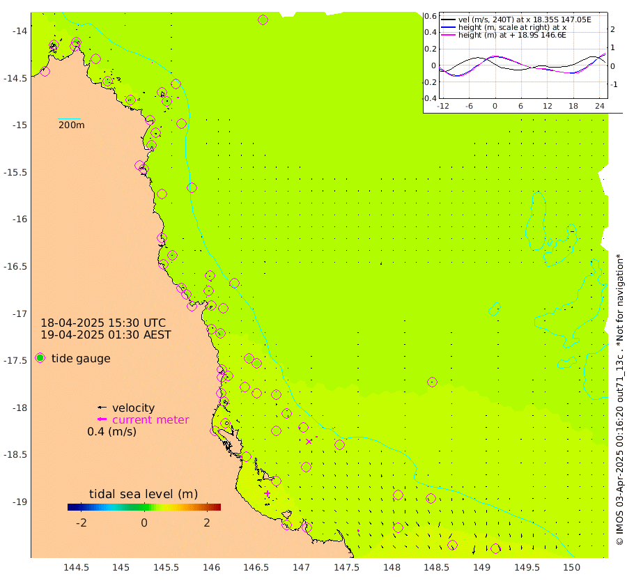 2cm/s -58T +11cm/s rms + 4cm/s -61T. GBRLSL 354m 4cm/s 175T +15cm/s rms + 2cm/s -84T. GBRLSH 32m 4cm/s -180T +15cm/s rms + 5cm/s -155T. GBRPPS 72m 2cm/s -136T +17cm/s rms + 13cm/s 115T. GBRMYR 223m 11cm/s 149T +18cm/s rms + 0cm/s -9T. NRSYON 29m 35cm Osprey Reef - West 36cm Stanley Island 29cm Pipon Islands 41cm Cape Melville 41cm Munro Reef 37cm Leggatt Island 32cm Normanby River 45cm Carter Reef 42cm Lizard Island (QLD) 35cm East Petherbridge Island 37cm North Direction Island 43cm Cape Flattery 39cm Ribbon Reef No.9 43cm Low Wooded Island 35cm Cape Bedford 18cm Endeavour River North 40cm Cooktown 39cm Cruiser Passage 50cm East Hope Island 39cm Bailay Creek 37cm Low Islets 41cm Port Douglas 41cm Palm Cove 37cm Yorkeys Knob 40cm Michaelmas Cay 45cm Euston Reef 42cm Cairns 39cm Green Island 49cm Fitzroy Island 43cm Sudbury Cay 42cm High Island 32cm Russell Island 35cm Peart Reef 36cm Nathan Reef 43cm Mourilyan Harbour 42cm Cowley Beach 45cm North Barnard Island 46cm Eddy Reef 54cm Beaver Reef 42cm Unnamed Reef No. 1 42cm Flinders Reef 44cm Clump Point 44cm Dunk Island 43cm Barnett Patches 45cm Goold Island 47cm Cardwell 45cm Britomart Reef 48cm Pith Reef 44cm Dip Reef 46cm Lucinda (Offshore) 43cm John Brewer Reef 48cm Albino Rock 55cm Shrimp Reef 51cm Jaguar Reef 48cm Townsville 48cm Cape Ferguson 50cm Stanley Reef 55cm Wallaby Reef 56cm Kennedy Reef