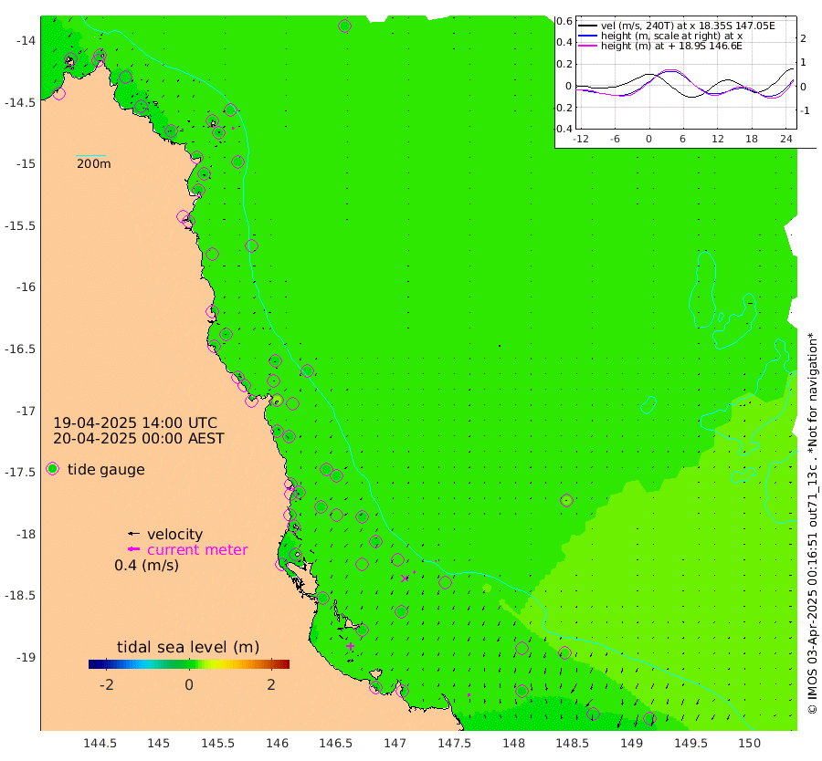 2cm/s -79T +11cm/s rms + 4cm/s -61T. GBRLSL 354m 7cm/s -170T +15cm/s rms + 2cm/s -84T. GBRLSH 32m 8cm/s -139T +15cm/s rms + 5cm/s -155T. GBRPPS 72m 4cm/s -128T +17cm/s rms + 13cm/s 115T. GBRMYR 223m 9cm/s 177T +18cm/s rms + 0cm/s -9T. NRSYON 29m 11cm Osprey Reef - West 3cm Stanley Island 4cm Pipon Islands 8cm Cape Melville 11cm Munro Reef 9cm Leggatt Island 3cm Normanby River 15cm Carter Reef 12cm Lizard Island (QLD) -2cm East Petherbridge Island 0cm North Direction Island 14cm Cape Flattery 15cm Ribbon Reef No.9 12cm Low Wooded Island -1cm Cape Bedford 3cm Endeavour River North 11cm Cooktown 16cm Cruiser Passage 18cm East Hope Island 1cm Bailay Creek 10cm Low Islets 11cm Port Douglas 14cm Palm Cove 14cm Yorkeys Knob 11cm Michaelmas Cay 9cm Euston Reef 12cm Cairns 15cm Green Island 31cm Fitzroy Island 18cm Sudbury Cay 14cm High Island 9cm Russell Island 12cm Peart Reef 15cm Nathan Reef 12cm Mourilyan Harbour 9cm Cowley Beach 13cm North Barnard Island 15cm Eddy Reef 16cm Beaver Reef 15cm Unnamed Reef No. 1 23cm Flinders Reef 13cm Clump Point 14cm Dunk Island 11cm Barnett Patches 12cm Goold Island 8cm Cardwell 16cm Britomart Reef 16cm Pith Reef 22cm Dip Reef 11cm Lucinda (Offshore) 15cm John Brewer Reef 14cm Albino Rock 17cm Shrimp Reef 18cm Jaguar Reef 11cm Townsville 12cm Cape Ferguson 4cm Stanley Reef 10cm Wallaby Reef 10cm Kennedy Reef