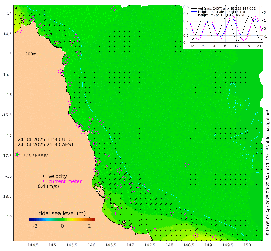 1cm/s 101T +11cm/s rms + 4cm/s -61T. GBRLSL 354m 19cm/s 19T +15cm/s rms + 2cm/s -84T. GBRLSH 32m 20cm/s 45T +15cm/s rms + 5cm/s -155T. GBRPPS 72m 8cm/s 46T +17cm/s rms + 13cm/s 115T. GBRMYR 223m 14cm/s 70T +18cm/s rms + 0cm/s -9T. NRSYON 29m 10cm Osprey Reef - West 26cm Stanley Island 11cm Pipon Islands 17cm Cape Melville 21cm Munro Reef 21cm Leggatt Island 32cm Normanby River 13cm Carter Reef 12cm Lizard Island (QLD) 26cm East Petherbridge Island 18cm North Direction Island 18cm Cape Flattery 13cm Ribbon Reef No.9 10cm Low Wooded Island 19cm Cape Bedford 16cm Endeavour River North 13cm Cooktown 8cm Cruiser Passage 2cm East Hope Island 23cm Bailay Creek 10cm Low Islets 13cm Port Douglas 7cm Palm Cove 4cm Yorkeys Knob 16cm Michaelmas Cay 6cm Euston Reef 14cm Cairns 2cm Green Island -5cm Fitzroy Island 8cm Sudbury Cay 2cm High Island -1cm Russell Island 6cm Peart Reef 1cm Nathan Reef 16cm Mourilyan Harbour 15cm Cowley Beach 28cm North Barnard Island 19cm Eddy Reef 20cm Beaver Reef 8cm Unnamed Reef No. 1 0cm Flinders Reef 16cm Clump Point 18cm Dunk Island 9cm Barnett Patches 17cm Goold Island 36cm Cardwell 1cm Britomart Reef 7cm Pith Reef 4cm Dip Reef 23cm Lucinda (Offshore) 16cm John Brewer Reef 22cm Albino Rock 12cm Shrimp Reef 9cm Jaguar Reef 23cm Townsville 19cm Cape Ferguson 36cm Stanley Reef 47cm Wallaby Reef 33cm Kennedy Reef
