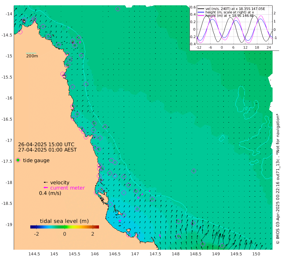 1cm/s -46T +11cm/s rms + 4cm/s -61T. GBRLSL 354m 23cm/s 12T +15cm/s rms + 2cm/s -84T. GBRLSH 32m 16cm/s 22T +15cm/s rms + 5cm/s -155T. GBRPPS 72m 9cm/s 26T +17cm/s rms + 13cm/s 115T. GBRMYR 223m 26cm/s -15T +18cm/s rms + 0cm/s -9T. NRSYON 29m -57cm Osprey Reef - West -65cm Stanley Island -67cm Pipon Islands -56cm Cape Melville -64cm Munro Reef -65cm Leggatt Island -79cm Normanby River -59cm Carter Reef -61cm Lizard Island (QLD) -61cm East Petherbridge Island -57cm North Direction Island -66cm Cape Flattery -61cm Ribbon Reef No.9 -63cm Low Wooded Island -53cm Cape Bedford -33cm Endeavour River North -65cm Cooktown -61cm Cruiser Passage -69cm East Hope Island -51cm Bailay Creek -64cm Low Islets -70cm Port Douglas -73cm Palm Cove -73cm Yorkeys Knob -58cm Michaelmas Cay -59cm Euston Reef -72cm Cairns -71cm Green Island -78cm Fitzroy Island -68cm Sudbury Cay -69cm High Island -69cm Russell Island -74cm Peart Reef -72cm Nathan Reef -69cm Mourilyan Harbour -73cm Cowley Beach -60cm North Barnard Island -69cm Eddy Reef -93cm Beaver Reef -70cm Unnamed Reef No. 1 -62cm Flinders Reef -76cm Clump Point -77cm Dunk Island -68cm Barnett Patches -82cm Goold Island -83cm Cardwell -84cm Britomart Reef -66cm Pith Reef -67cm Dip Reef -84cm Lucinda (Offshore) -73cm John Brewer Reef -86cm Albino Rock -64cm Shrimp Reef -65cm Jaguar Reef -91cm Townsville -86cm Cape Ferguson -52cm Stanley Reef -41cm Wallaby Reef -52cm Kennedy Reef