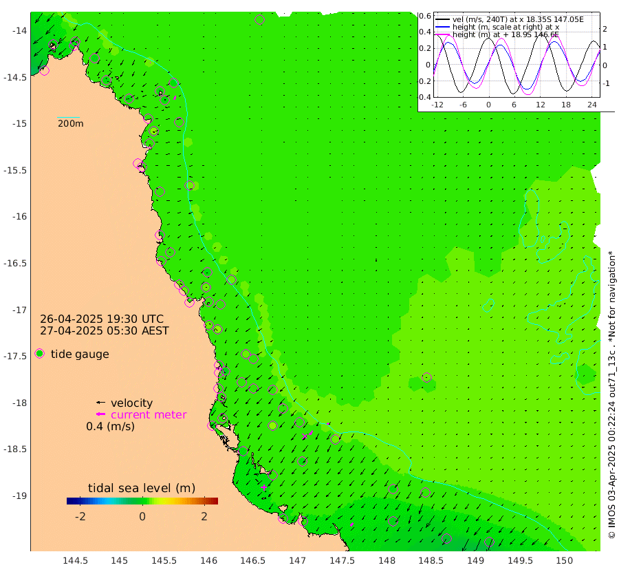 1cm/s -101T +11cm/s rms + 4cm/s -61T. GBRLSL 354m 19cm/s -157T +15cm/s rms + 2cm/s -84T. GBRLSH 32m 22cm/s -142T +15cm/s rms + 5cm/s -155T. GBRPPS 72m 10cm/s -144T +17cm/s rms + 13cm/s 115T. GBRMYR 223m 15cm/s -139T +18cm/s rms + 0cm/s -9T. NRSYON 29m 18cm Osprey Reef - West 8cm Stanley Island 1cm Pipon Islands 9cm Cape Melville 6cm Munro Reef 8cm Leggatt Island 8cm Normanby River 9cm Carter Reef 14cm Lizard Island (QLD) 13cm East Petherbridge Island 14cm North Direction Island 16cm Cape Flattery 19cm Ribbon Reef No.9 32cm Low Wooded Island 16cm Cape Bedford 8cm Endeavour River North 17cm Cooktown 24cm Cruiser Passage 22cm East Hope Island 7cm Bailay Creek 17cm Low Islets 18cm Port Douglas 24cm Palm Cove 23cm Yorkeys Knob 15cm Michaelmas Cay 26cm Euston Reef 18cm Cairns 27cm Green Island 20cm Fitzroy Island 20cm Sudbury Cay 25cm High Island 33cm Russell Island 25cm Peart Reef 22cm Nathan Reef 15cm Mourilyan Harbour 19cm Cowley Beach -3cm North Barnard Island 15cm Eddy Reef 20cm Beaver Reef 21cm Unnamed Reef No. 1 28cm Flinders Reef 18cm Clump Point 17cm Dunk Island 20cm Barnett Patches 20cm Goold Island 5cm Cardwell 31cm Britomart Reef 20cm Pith Reef 28cm Dip Reef 15cm Lucinda (Offshore) 13cm John Brewer Reef 18cm Albino Rock 14cm Shrimp Reef 17cm Jaguar Reef 17cm Townsville 18cm Cape Ferguson -5cm Stanley Reef -21cm Wallaby Reef -6cm Kennedy Reef