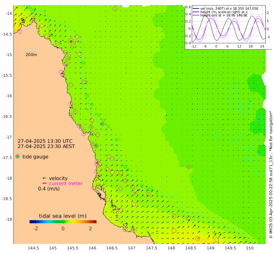 1cm/s -47T +11cm/s rms + 4cm/s -61T. GBRLSL 354m 20cm/s 24T +15cm/s rms + 2cm/s -84T. GBRLSH 32m 22cm/s 48T +15cm/s rms + 5cm/s -155T. GBRPPS 72m 8cm/s 45T +17cm/s rms + 13cm/s 115T. GBRMYR 223m 17cm/s 79T +18cm/s rms + 0cm/s -9T. NRSYON 29m 33cm Osprey Reef - West 48cm Stanley Island 34cm Pipon Islands 45cm Cape Melville 49cm Munro Reef 48cm Leggatt Island 50cm Normanby River 47cm Carter Reef 41cm Lizard Island (QLD) 42cm East Petherbridge Island 38cm North Direction Island 44cm Cape Flattery 38cm Ribbon Reef No.9 37cm Low Wooded Island 36cm Cape Bedford 23cm Endeavour River North 39cm Cooktown 33cm Cruiser Passage 34cm East Hope Island 45cm Bailay Creek 35cm Low Islets 39cm Port Douglas 34cm Palm Cove 33cm Yorkeys Knob 41cm Michaelmas Cay 22cm Euston Reef 41cm Cairns 28cm Green Island 32cm Fitzroy Island 36cm Sudbury Cay 32cm High Island 18cm Russell Island 32cm Peart Reef 30cm Nathan Reef 43cm Mourilyan Harbour 38cm Cowley Beach 60cm North Barnard Island 43cm Eddy Reef 54cm Beaver Reef 36cm Unnamed Reef No. 1 27cm Flinders Reef 43cm Clump Point 47cm Dunk Island 36cm Barnett Patches 46cm Goold Island 63cm Cardwell 32cm Britomart Reef 34cm Pith Reef 33cm Dip Reef 50cm Lucinda (Offshore) 49cm John Brewer Reef 46cm Albino Rock 45cm Shrimp Reef 36cm Jaguar Reef 50cm Townsville 47cm Cape Ferguson 69cm Stanley Reef 80cm Wallaby Reef 64cm Kennedy Reef