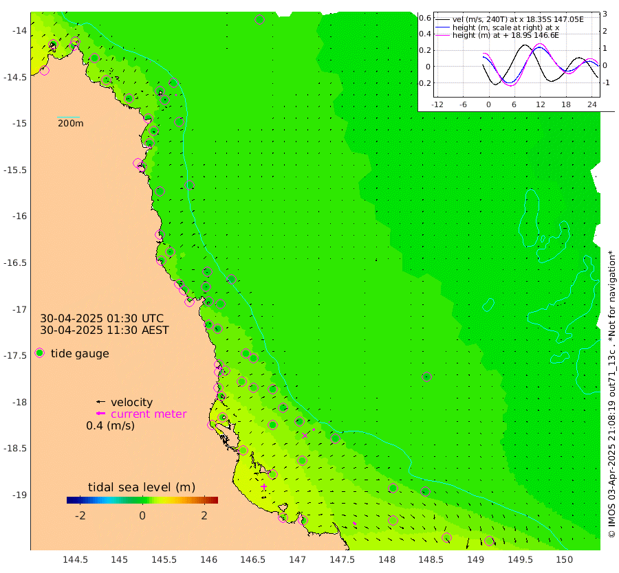 0cm/s -80T +11cm/s rms + 4cm/s -61T. GBRLSL 354m 7cm/s 21T +15cm/s rms + 2cm/s -84T. GBRLSH 32m 9cm/s 57T +15cm/s rms + 5cm/s -155T. GBRPPS 72m 1cm/s 83T +17cm/s rms + 13cm/s 115T. GBRMYR 223m 16cm/s 125T +18cm/s rms + 0cm/s -9T. NRSYON 29m 9cm Osprey Reef - West 15cm Stanley Island 40cm Pipon Islands 13cm Cape Melville 14cm Munro Reef 20cm Leggatt Island 31cm Normanby River 9cm Carter Reef 10cm Lizard Island (QLD) 10cm East Petherbridge Island 6cm North Direction Island 13cm Cape Flattery 8cm Ribbon Reef No.9 12cm Low Wooded Island 4cm Cape Bedford 7cm Endeavour River North 12cm Cooktown 6cm Cruiser Passage 2cm East Hope Island 14cm Bailay Creek 10cm Low Islets 14cm Port Douglas 12cm Palm Cove 12cm Yorkeys Knob 7cm Michaelmas Cay -9cm Euston Reef 16cm Cairns 3cm Green Island 13cm Fitzroy Island 9cm Sudbury Cay 10cm High Island -2cm Russell Island 9cm Peart Reef 11cm Nathan Reef 15cm Mourilyan Harbour 13cm Cowley Beach 24cm North Barnard Island 18cm Eddy Reef 21cm Beaver Reef 10cm Unnamed Reef No. 1 -1cm Flinders Reef 18cm Clump Point 21cm Dunk Island 9cm Barnett Patches 20cm Goold Island 33cm Cardwell 13cm Britomart Reef 6cm Pith Reef 7cm Dip Reef 25cm Lucinda (Offshore) 17cm John Brewer Reef 24cm Albino Rock 8cm Shrimp Reef 6cm Jaguar Reef 27cm Townsville 22cm Cape Ferguson 24cm Stanley Reef 23cm Wallaby Reef 24cm Kennedy Reef