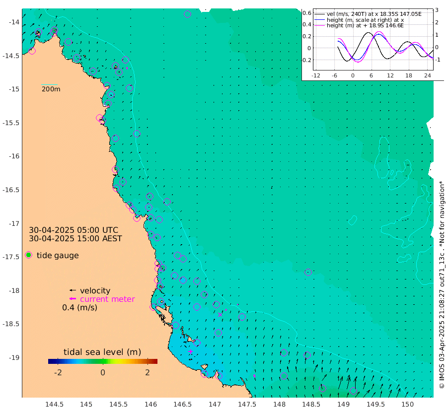 1cm/s 57T +11cm/s rms + 4cm/s -61T. GBRLSL 354m 14cm/s 9T +15cm/s rms + 2cm/s -84T. GBRLSH 32m 10cm/s 12T +15cm/s rms + 5cm/s -155T. GBRPPS 72m 6cm/s 35T +17cm/s rms + 13cm/s 115T. GBRMYR 223m 17cm/s -19T +18cm/s rms + 0cm/s -9T. NRSYON 29m -80cm Osprey Reef - West -77cm Stanley Island -49cm Pipon Islands -72cm Cape Melville -81cm Munro Reef -81cm Leggatt Island -81cm Normanby River -79cm Carter Reef -77cm Lizard Island (QLD) -79cm East Petherbridge Island -75cm North Direction Island -84cm Cape Flattery -86cm Ribbon Reef No.9 -93cm Low Wooded Island -73cm Cape Bedford -47cm Endeavour River North -81cm Cooktown -85cm Cruiser Passage -83cm East Hope Island -66cm Bailay Creek -77cm Low Islets -84cm Port Douglas -88cm Palm Cove -84cm Yorkeys Knob -77cm Michaelmas Cay -78cm Euston Reef -86cm Cairns -84cm Green Island -81cm Fitzroy Island -84cm Sudbury Cay -80cm High Island -76cm Russell Island -82cm Peart Reef -81cm Nathan Reef -85cm Mourilyan Harbour -83cm Cowley Beach -65cm North Barnard Island -94cm Eddy Reef -109cm Beaver Reef -88cm Unnamed Reef No. 1 -86cm Flinders Reef -88cm Clump Point -87cm Dunk Island -81cm Barnett Patches -92cm Goold Island -92cm Cardwell -91cm Britomart Reef -83cm Pith Reef -94cm Dip Reef -92cm Lucinda (Offshore) -79cm John Brewer Reef -98cm Albino Rock -81cm Shrimp Reef -80cm Jaguar Reef -96cm Townsville -93cm Cape Ferguson -73cm Stanley Reef -67cm Wallaby Reef -78cm Kennedy Reef