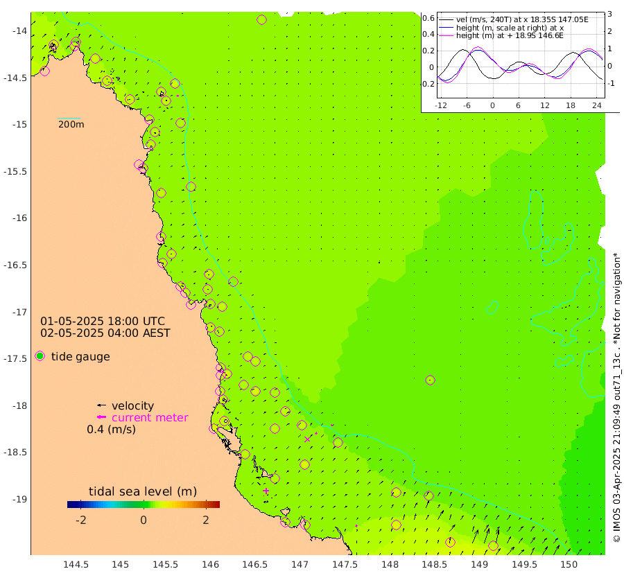 1cm/s -34T +11cm/s rms + 4cm/s -61T. GBRLSL 354m 7cm/s 34T +15cm/s rms + 2cm/s -84T. GBRLSH 32m 9cm/s 60T +15cm/s rms + 5cm/s -155T. GBRPPS 72m 5cm/s 51T +17cm/s rms + 13cm/s 115T. GBRMYR 223m 8cm/s 33T +18cm/s rms + 0cm/s -9T. NRSYON 29m 38cm Osprey Reef - West 53cm Stanley Island 29cm Pipon Islands 51cm Cape Melville 53cm Munro Reef 49cm Leggatt Island 47cm Normanby River 56cm Carter Reef 52cm Lizard Island (QLD) 49cm East Petherbridge Island 49cm North Direction Island 46cm Cape Flattery 43cm Ribbon Reef No.9 48cm Low Wooded Island 46cm Cape Bedford 23cm Endeavour River North 48cm Cooktown 42cm Cruiser Passage 51cm East Hope Island 51cm Bailay Creek 47cm Low Islets 46cm Port Douglas 45cm Palm Cove 48cm Yorkeys Knob 48cm Michaelmas Cay 34cm Euston Reef 47cm Cairns 44cm Green Island 44cm Fitzroy Island 45cm Sudbury Cay 51cm High Island 42cm Russell Island 49cm Peart Reef 47cm Nathan Reef 48cm Mourilyan Harbour 46cm Cowley Beach 60cm North Barnard Island 38cm Eddy Reef 62cm Beaver Reef 44cm Unnamed Reef No. 1 38cm Flinders Reef 48cm Clump Point 52cm Dunk Island 50cm Barnett Patches 52cm Goold Island 55cm Cardwell 48cm Britomart Reef 45cm Pith Reef 41cm Dip Reef 51cm Lucinda (Offshore) 60cm John Brewer Reef 43cm Albino Rock 53cm Shrimp Reef 40cm Jaguar Reef 51cm Townsville 50cm Cape Ferguson 66cm Stanley Reef 63cm Wallaby Reef 48cm Kennedy Reef