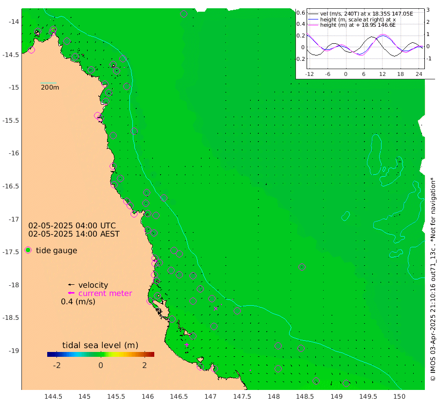 0cm/s 71T +11cm/s rms + 4cm/s -61T. GBRLSL 354m 3cm/s 1T +15cm/s rms + 2cm/s -84T. GBRLSH 32m 3cm/s 40T +15cm/s rms + 5cm/s -155T. GBRPPS 72m 1cm/s 140T +17cm/s rms + 13cm/s 115T. GBRMYR 223m 5cm/s 128T +18cm/s rms + 0cm/s -9T. NRSYON 29m -24cm Osprey Reef - West -22cm Stanley Island 17cm Pipon Islands -17cm Cape Melville -24cm Munro Reef -19cm Leggatt Island -16cm Normanby River -24cm Carter Reef -21cm Lizard Island (QLD) -27cm East Petherbridge Island -25cm North Direction Island -25cm Cape Flattery -28cm Ribbon Reef No.9 -29cm Low Wooded Island -25cm Cape Bedford -20cm Endeavour River North -22cm Cooktown -28cm Cruiser Passage -28cm East Hope Island -21cm Bailay Creek -23cm Low Islets -21cm Port Douglas -22cm Palm Cove -20cm Yorkeys Knob -24cm Michaelmas Cay -32cm Euston Reef -21cm Cairns -26cm Green Island -17cm Fitzroy Island -25cm Sudbury Cay -18cm High Island -26cm Russell Island -22cm Peart Reef -20cm Nathan Reef -21cm Mourilyan Harbour -21cm Cowley Beach -12cm North Barnard Island -25cm Eddy Reef -30cm Beaver Reef -23cm Unnamed Reef No. 1 -30cm Flinders Reef -19cm Clump Point -16cm Dunk Island -25cm Barnett Patches -18cm Goold Island -14cm Cardwell -18cm Britomart Reef -26cm Pith Reef -29cm Dip Reef -16cm Lucinda (Offshore) -16cm John Brewer Reef -20cm Albino Rock -24cm Shrimp Reef -22cm Jaguar Reef -15cm Townsville -16cm Cape Ferguson -13cm Stanley Reef -14cm Wallaby Reef -9cm Kennedy Reef