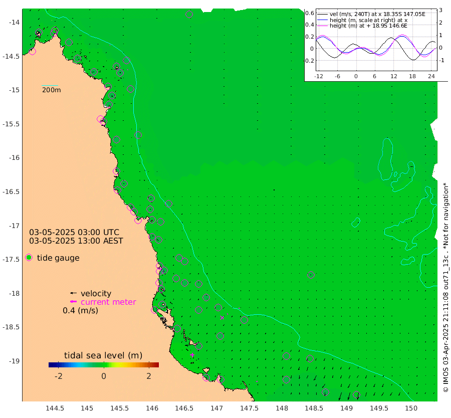 1cm/s 116T +11cm/s rms + 4cm/s -61T. GBRLSL 354m 1cm/s -125T +15cm/s rms + 2cm/s -84T. GBRLSH 32m 4cm/s -126T +15cm/s rms + 5cm/s -155T. GBRPPS 72m 3cm/s -140T +17cm/s rms + 13cm/s 115T. GBRMYR 223m 5cm/s -160T +18cm/s rms + 0cm/s -9T. NRSYON 29m -21cm Osprey Reef - West -34cm Stanley Island 4cm Pipon Islands -24cm Cape Melville -31cm Munro Reef -26cm Leggatt Island -32cm Normanby River -31cm Carter Reef -28cm Lizard Island (QLD) -34cm East Petherbridge Island -31cm North Direction Island -29cm Cape Flattery -29cm Ribbon Reef No.9 -31cm Low Wooded Island -30cm Cape Bedford -22cm Endeavour River North -27cm Cooktown -29cm Cruiser Passage -30cm East Hope Island -32cm Bailay Creek -26cm Low Islets -25cm Port Douglas -24cm Palm Cove -25cm Yorkeys Knob -29cm Michaelmas Cay -27cm Euston Reef -25cm Cairns -28cm Green Island -20cm Fitzroy Island -27cm Sudbury Cay -23cm High Island -29cm Russell Island -30cm Peart Reef -24cm Nathan Reef -25cm Mourilyan Harbour -27cm Cowley Beach -32cm North Barnard Island -22cm Eddy Reef -37cm Beaver Reef -24cm Unnamed Reef No. 1 -26cm Flinders Reef -25cm Clump Point -28cm Dunk Island -31cm Barnett Patches -26cm Goold Island -27cm Cardwell -23cm Britomart Reef -27cm Pith Reef -25cm Dip Reef -26cm Lucinda (Offshore) -32cm John Brewer Reef -25cm Albino Rock -30cm Shrimp Reef -22cm Jaguar Reef -25cm Townsville -25cm Cape Ferguson -32cm Stanley Reef -32cm Wallaby Reef -13cm Kennedy Reef