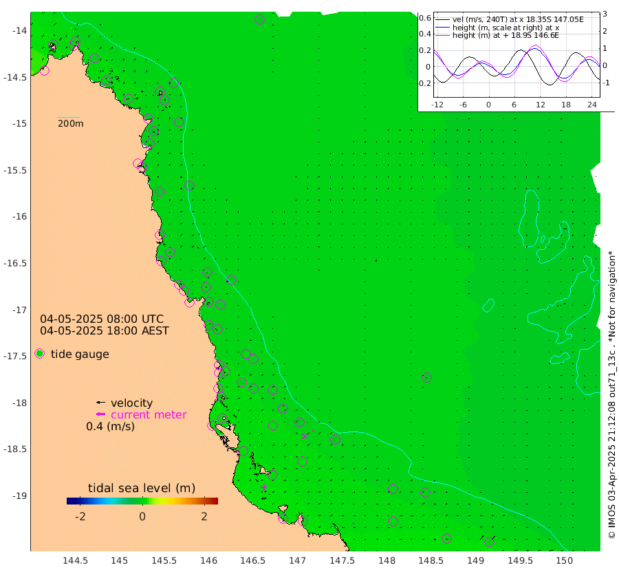1cm/s 107T +11cm/s rms + 4cm/s -61T. GBRLSL 354m 2cm/s 19T +15cm/s rms + 2cm/s -84T. GBRLSH 32m 5cm/s 58T +15cm/s rms + 5cm/s -155T. GBRPPS 72m 3cm/s 79T +17cm/s rms + 13cm/s 115T. GBRMYR 223m 4cm/s 95T +18cm/s rms + 0cm/s -9T. NRSYON 29m -10cm Osprey Reef - West 7cm Stanley Island 13cm Pipon Islands 1cm Cape Melville 0cm Munro Reef 1cm Leggatt Island 13cm Normanby River -1cm Carter Reef -2cm Lizard Island (QLD) 2cm East Petherbridge Island -1cm North Direction Island -1cm Cape Flattery -6cm Ribbon Reef No.9 -11cm Low Wooded Island 0cm Cape Bedford -8cm Endeavour River North -2cm Cooktown -8cm Cruiser Passage -8cm East Hope Island -2cm Bailay Creek -4cm Low Islets -1cm Port Douglas -3cm Palm Cove -1cm Yorkeys Knob -2cm Michaelmas Cay -10cm Euston Reef -1cm Cairns -3cm Green Island -3cm Fitzroy Island -6cm Sudbury Cay -4cm High Island 0cm Russell Island 3cm Peart Reef -2cm Nathan Reef -1cm Mourilyan Harbour 2cm Cowley Beach 9cm North Barnard Island -11cm Eddy Reef -3cm Beaver Reef -6cm Unnamed Reef No. 1 -10cm Flinders Reef 1cm Clump Point 6cm Dunk Island -5cm Barnett Patches 4cm Goold Island 11cm Cardwell 1cm Britomart Reef -10cm Pith Reef -13cm Dip Reef 6cm Lucinda (Offshore) 11cm John Brewer Reef 1cm Albino Rock -5cm Shrimp Reef -7cm Jaguar Reef 9cm Townsville 6cm Cape Ferguson 7cm Stanley Reef 6cm Wallaby Reef -3cm Kennedy Reef