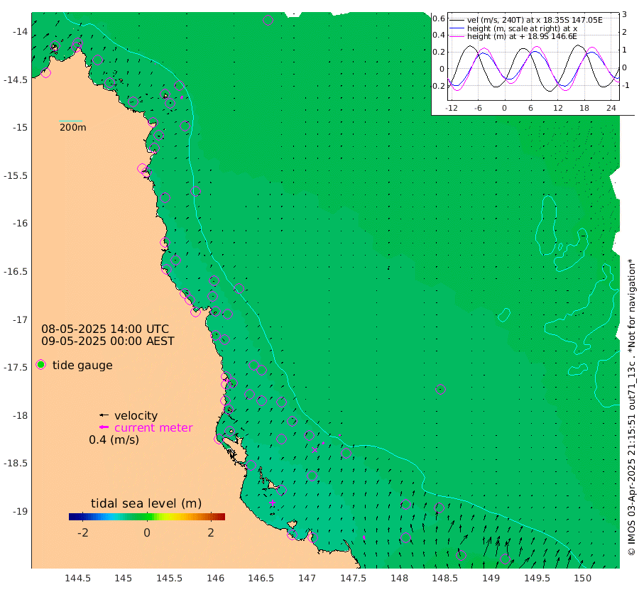 2cm/s -71T +11cm/s rms + 4cm/s -61T. GBRLSL 354m 13cm/s 12T +15cm/s rms + 2cm/s -84T. GBRLSH 32m 11cm/s 23T +15cm/s rms + 5cm/s -155T. GBRPPS 72m 6cm/s 24T +17cm/s rms + 13cm/s 115T. GBRMYR 223m 17cm/s -14T +18cm/s rms + 0cm/s -9T. NRSYON 29m -40cm Osprey Reef - West -45cm Stanley Island -47cm Pipon Islands -38cm Cape Melville -41cm Munro Reef -42cm Leggatt Island -51cm Normanby River -37cm Carter Reef -40cm Lizard Island (QLD) -49cm East Petherbridge Island -46cm North Direction Island -42cm Cape Flattery -39cm Ribbon Reef No.9 -45cm Low Wooded Island -44cm Cape Bedford -25cm Endeavour River North -43cm Cooktown -40cm Cruiser Passage -46cm East Hope Island -43cm Bailay Creek -42cm Low Islets -47cm Port Douglas -49cm Palm Cove -45cm Yorkeys Knob -40cm Michaelmas Cay -52cm Euston Reef -49cm Cairns -46cm Green Island -39cm Fitzroy Island -43cm Sudbury Cay -44cm High Island -45cm Russell Island -44cm Peart Reef -42cm Nathan Reef -47cm Mourilyan Harbour -53cm Cowley Beach -33cm North Barnard Island -51cm Eddy Reef -62cm Beaver Reef -47cm Unnamed Reef No. 1 -36cm Flinders Reef -52cm Clump Point -48cm Dunk Island -47cm Barnett Patches -55cm Goold Island -57cm Cardwell -55cm Britomart Reef -48cm Pith Reef -41cm Dip Reef -57cm Lucinda (Offshore) -39cm John Brewer Reef -61cm Albino Rock -45cm Shrimp Reef -48cm Jaguar Reef -63cm Townsville -60cm Cape Ferguson -40cm Stanley Reef -31cm Wallaby Reef -44cm Kennedy Reef