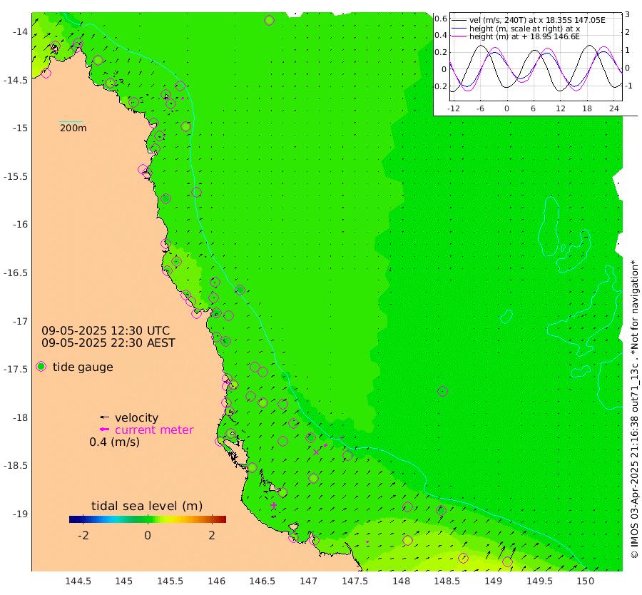 1cm/s -80T +11cm/s rms + 4cm/s -61T. GBRLSL 354m 11cm/s 22T +15cm/s rms + 2cm/s -84T. GBRLSH 32m 15cm/s 45T +15cm/s rms + 5cm/s -155T. GBRPPS 72m 6cm/s 45T +17cm/s rms + 13cm/s 115T. GBRMYR 223m 10cm/s 64T +18cm/s rms + 0cm/s -9T. NRSYON 29m 23cm Osprey Reef - West 27cm Stanley Island 17cm Pipon Islands 22cm Cape Melville 25cm Munro Reef 29cm Leggatt Island 33cm Normanby River 20cm Carter Reef 22cm Lizard Island (QLD) 21cm East Petherbridge Island 18cm North Direction Island 21cm Cape Flattery 24cm Ribbon Reef No.9 20cm Low Wooded Island 17cm Cape Bedford 25cm Endeavour River North 21cm Cooktown 21cm Cruiser Passage 7cm East Hope Island 19cm Bailay Creek 18cm Low Islets 21cm Port Douglas 19cm Palm Cove 23cm Yorkeys Knob 21cm Michaelmas Cay -3cm Euston Reef 22cm Cairns 15cm Green Island 10cm Fitzroy Island 18cm Sudbury Cay 18cm High Island 8cm Russell Island 22cm Peart Reef 20cm Nathan Reef 23cm Mourilyan Harbour 19cm Cowley Beach 34cm North Barnard Island 22cm Eddy Reef 28cm Beaver Reef 22cm Unnamed Reef No. 1 14cm Flinders Reef 23cm Clump Point 28cm Dunk Island 19cm Barnett Patches 27cm Goold Island 35cm Cardwell 15cm Britomart Reef 14cm Pith Reef 22cm Dip Reef 28cm Lucinda (Offshore) 27cm John Brewer Reef 24cm Albino Rock 16cm Shrimp Reef 13cm Jaguar Reef 27cm Townsville 25cm Cape Ferguson 42cm Stanley Reef 47cm Wallaby Reef 37cm Kennedy Reef