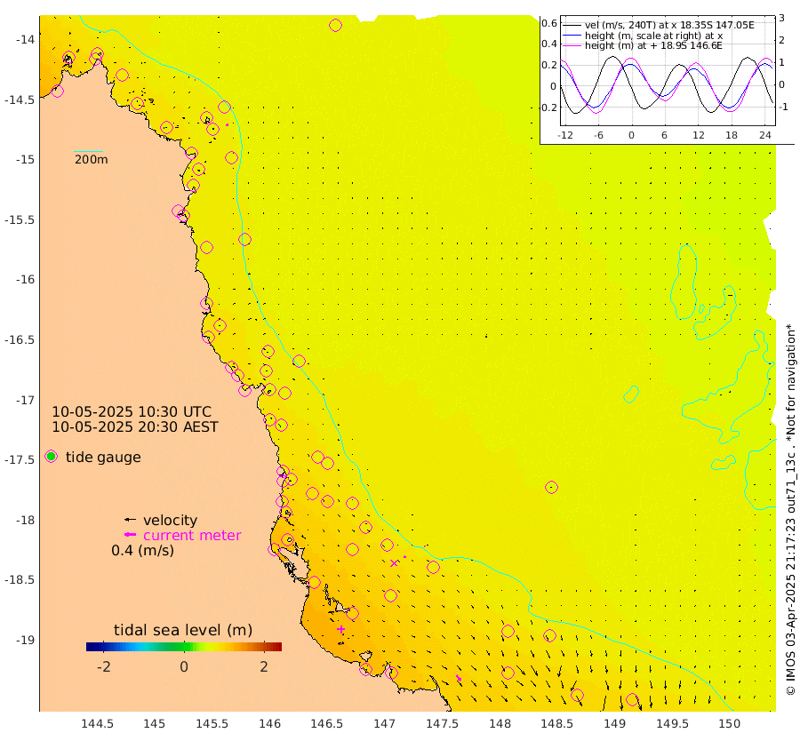 1cm/s 117T +11cm/s rms + 4cm/s -61T. GBRLSL 354m 6cm/s 171T +15cm/s rms + 2cm/s -84T. GBRLSH 32m 6cm/s 116T +15cm/s rms + 5cm/s -155T. GBRPPS 72m 2cm/s 156T +17cm/s rms + 13cm/s 115T. GBRMYR 223m 23cm/s 139T +18cm/s rms + 0cm/s -9T. NRSYON 29m 74cm Osprey Reef - West 80cm Stanley Island 61cm Pipon Islands 68cm Cape Melville 76cm Munro Reef 79cm Leggatt Island 91cm Normanby River 66cm Carter Reef 72cm Lizard Island (QLD) 81cm East Petherbridge Island 75cm North Direction Island 77cm Cape Flattery 75cm Ribbon Reef No.9 76cm Low Wooded Island 73cm Cape Bedford 59cm Endeavour River North 75cm Cooktown 73cm Cruiser Passage 68cm East Hope Island 69cm Bailay Creek 69cm Low Islets 79cm Port Douglas 79cm Palm Cove 75cm Yorkeys Knob 73cm Michaelmas Cay 69cm Euston Reef 81cm Cairns 74cm Green Island 60cm Fitzroy Island 74cm Sudbury Cay 71cm High Island 66cm Russell Island 74cm Peart Reef 70cm Nathan Reef 82cm Mourilyan Harbour 84cm Cowley Beach 74cm North Barnard Island 88cm Eddy Reef 104cm Beaver Reef 81cm Unnamed Reef No. 1 67cm Flinders Reef 87cm Clump Point 86cm Dunk Island 77cm Barnett Patches 94cm Goold Island 103cm Cardwell 81cm Britomart Reef 76cm Pith Reef 77cm Dip Reef 97cm Lucinda (Offshore) 75cm John Brewer Reef 101cm Albino Rock 76cm Shrimp Reef 78cm Jaguar Reef 103cm Townsville 98cm Cape Ferguson 89cm Stanley Reef 89cm Wallaby Reef 97cm Kennedy Reef