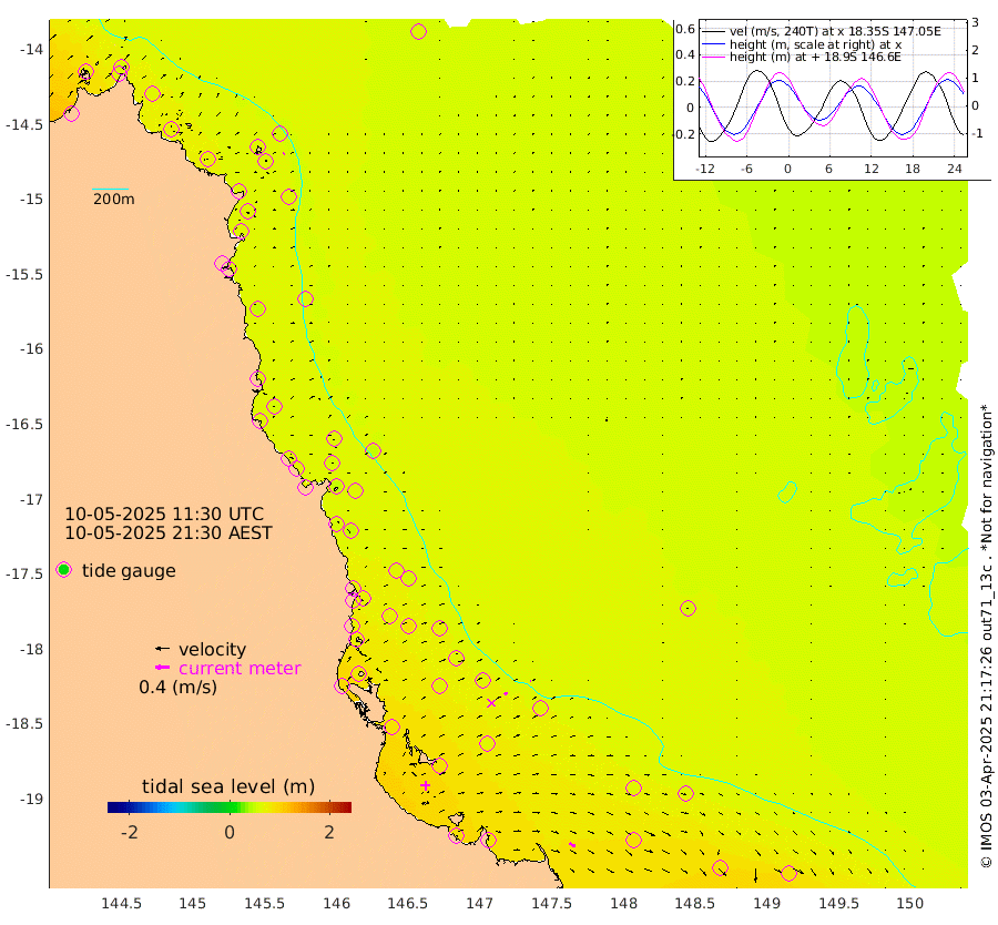 0cm/s 130T +11cm/s rms + 4cm/s -61T. GBRLSL 354m 4cm/s 46T +15cm/s rms + 2cm/s -84T. GBRLSH 32m 11cm/s 69T +15cm/s rms + 5cm/s -155T. GBRPPS 72m 3cm/s 79T +17cm/s rms + 13cm/s 115T. GBRMYR 223m 18cm/s 121T +18cm/s rms + 0cm/s -9T. NRSYON 29m 64cm Osprey Reef - West 70cm Stanley Island 53cm Pipon Islands 60cm Cape Melville 67cm Munro Reef 71cm Leggatt Island 81cm Normanby River 57cm Carter Reef 62cm Lizard Island (QLD) 69cm East Petherbridge Island 63cm North Direction Island 64cm Cape Flattery 65cm Ribbon Reef No.9 66cm Low Wooded Island 61cm Cape Bedford 55cm Endeavour River North 64cm Cooktown 62cm Cruiser Passage 52cm East Hope Island 61cm Bailay Creek 58cm Low Islets 66cm Port Douglas 66cm Palm Cove 65cm Yorkeys Knob 63cm Michaelmas Cay 49cm Euston Reef 69cm Cairns 59cm Green Island 46cm Fitzroy Island 61cm Sudbury Cay 59cm High Island 50cm Russell Island 63cm Peart Reef 59cm Nathan Reef 70cm Mourilyan Harbour 69cm Cowley Beach 69cm North Barnard Island 74cm Eddy Reef 88cm Beaver Reef 68cm Unnamed Reef No. 1 54cm Flinders Reef 73cm Clump Point 75cm Dunk Island 65cm Barnett Patches 80cm Goold Island 90cm Cardwell 65cm Britomart Reef 62cm Pith Reef 66cm Dip Reef 83cm Lucinda (Offshore) 65cm John Brewer Reef 84cm Albino Rock 63cm Shrimp Reef 63cm Jaguar Reef 87cm Townsville 82cm Cape Ferguson 85cm Stanley Reef 87cm Wallaby Reef 88cm Kennedy Reef