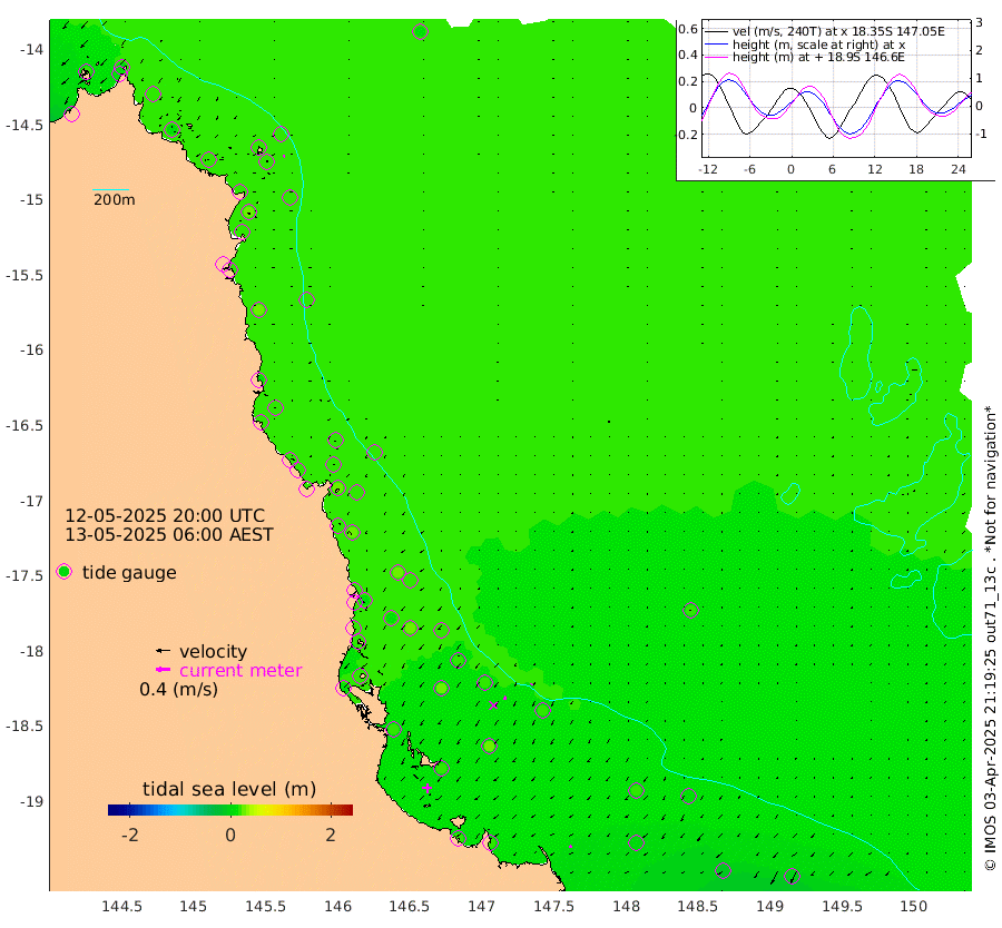 0cm/s -128T +11cm/s rms + 4cm/s -61T. GBRLSL 354m 5cm/s -148T +15cm/s rms + 2cm/s -84T. GBRLSH 32m 9cm/s -146T +15cm/s rms + 5cm/s -155T. GBRPPS 72m 4cm/s -150T +17cm/s rms + 13cm/s 115T. GBRMYR 223m 6cm/s -121T +18cm/s rms + 0cm/s -9T. NRSYON 29m 12cm Osprey Reef - West 16cm Stanley Island 1cm Pipon Islands 15cm Cape Melville 18cm Munro Reef 15cm Leggatt Island 14cm Normanby River 18cm Carter Reef 18cm Lizard Island (QLD) 16cm East Petherbridge Island 15cm North Direction Island 21cm Cape Flattery 18cm Ribbon Reef No.9 24cm Low Wooded Island 16cm Cape Bedford 4cm Endeavour River North 19cm Cooktown 19cm Cruiser Passage 28cm East Hope Island 11cm Bailay Creek 22cm Low Islets 18cm Port Douglas 21cm Palm Cove 20cm Yorkeys Knob 16cm Michaelmas Cay 18cm Euston Reef 19cm Cairns 22cm Green Island 28cm Fitzroy Island 20cm Sudbury Cay 22cm High Island 27cm Russell Island 24cm Peart Reef 22cm Nathan Reef 16cm Mourilyan Harbour 17cm Cowley Beach 13cm North Barnard Island 14cm Eddy Reef 25cm Beaver Reef 16cm Unnamed Reef No. 1 22cm Flinders Reef 17cm Clump Point 18cm Dunk Island 18cm Barnett Patches 18cm Goold Island 13cm Cardwell 24cm Britomart Reef 17cm Pith Reef 19cm Dip Reef 16cm Lucinda (Offshore) 24cm John Brewer Reef 16cm Albino Rock 17cm Shrimp Reef 11cm Jaguar Reef 17cm Townsville 16cm Cape Ferguson 1cm Stanley Reef -8cm Wallaby Reef -4cm Kennedy Reef