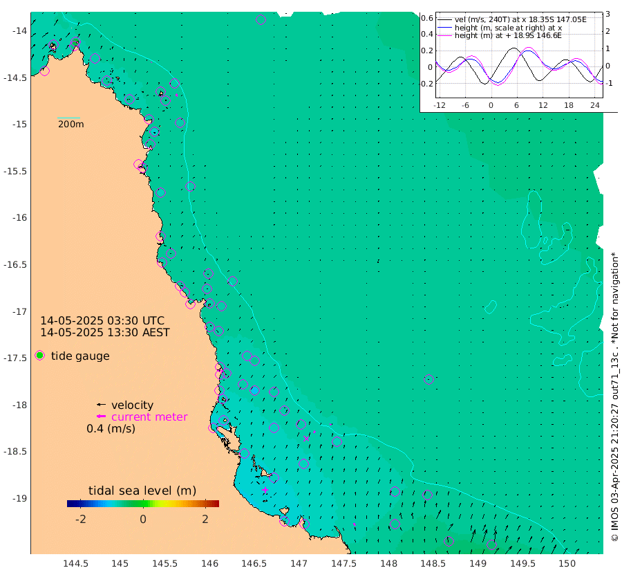 0cm/s 66T +11cm/s rms + 4cm/s -61T. GBRLSL 354m 11cm/s 9T +15cm/s rms + 2cm/s -84T. GBRLSH 32m 10cm/s 13T +15cm/s rms + 5cm/s -155T. GBRPPS 72m 4cm/s 30T +17cm/s rms + 13cm/s 115T. GBRMYR 223m 13cm/s -15T +18cm/s rms + 0cm/s -9T. NRSYON 29m -68cm Osprey Reef - West -75cm Stanley Island -36cm Pipon Islands -65cm Cape Melville -78cm Munro Reef -74cm Leggatt Island -76cm Normanby River -78cm Carter Reef -73cm Lizard Island (QLD) -75cm East Petherbridge Island -70cm North Direction Island -81cm Cape Flattery -79cm Ribbon Reef No.9 -90cm Low Wooded Island -70cm Cape Bedford -43cm Endeavour River North -76cm Cooktown -79cm Cruiser Passage -86cm East Hope Island -69cm Bailay Creek -74cm Low Islets -78cm Port Douglas -81cm Palm Cove -78cm Yorkeys Knob -74cm Michaelmas Cay -76cm Euston Reef -79cm Cairns -82cm Green Island -79cm Fitzroy Island -79cm Sudbury Cay -76cm High Island -78cm Russell Island -80cm Peart Reef -75cm Nathan Reef -78cm Mourilyan Harbour -79cm Cowley Beach -70cm North Barnard Island -80cm Eddy Reef -105cm Beaver Reef -78cm Unnamed Reef No. 1 -79cm Flinders Reef -81cm Clump Point -85cm Dunk Island -78cm Barnett Patches -86cm Goold Island -84cm Cardwell -86cm Britomart Reef -77cm Pith Reef -83cm Dip Reef -85cm Lucinda (Offshore) -83cm John Brewer Reef -88cm Albino Rock -81cm Shrimp Reef -75cm Jaguar Reef -88cm Townsville -85cm Cape Ferguson -69cm Stanley Reef -60cm Wallaby Reef -60cm Kennedy Reef