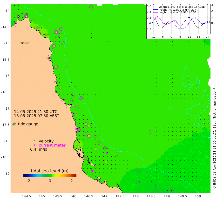 1cm/s 133T +11cm/s rms + 4cm/s -61T. GBRLSL 354m 1cm/s -139T +15cm/s rms + 2cm/s -84T. GBRLSH 32m 4cm/s -158T +15cm/s rms + 5cm/s -155T. GBRPPS 72m 2cm/s -155T +17cm/s rms + 13cm/s 115T. GBRMYR 223m 3cm/s -148T +18cm/s rms + 0cm/s -9T. NRSYON 29m 16cm Osprey Reef - West 20cm Stanley Island 7cm Pipon Islands 14cm Cape Melville 22cm Munro Reef 21cm Leggatt Island 24cm Normanby River 19cm Carter Reef 18cm Lizard Island (QLD) 19cm East Petherbridge Island 16cm North Direction Island 22cm Cape Flattery 21cm Ribbon Reef No.9 27cm Low Wooded Island 16cm Cape Bedford 9cm Endeavour River North 20cm Cooktown 21cm Cruiser Passage 24cm East Hope Island 16cm Bailay Creek 23cm Low Islets 20cm Port Douglas 22cm Palm Cove 23cm Yorkeys Knob 16cm Michaelmas Cay 12cm Euston Reef 21cm Cairns 21cm Green Island 23cm Fitzroy Island 21cm Sudbury Cay 21cm High Island 24cm Russell Island 25cm Peart Reef 23cm Nathan Reef 19cm Mourilyan Harbour 18cm Cowley Beach 16cm North Barnard Island 18cm Eddy Reef 30cm Beaver Reef 18cm Unnamed Reef No. 1 18cm Flinders Reef 20cm Clump Point 22cm Dunk Island 18cm Barnett Patches 21cm Goold Island 21cm Cardwell 23cm Britomart Reef 14cm Pith Reef 20cm Dip Reef 21cm Lucinda (Offshore) 24cm John Brewer Reef 21cm Albino Rock 14cm Shrimp Reef 9cm Jaguar Reef 21cm Townsville 19cm Cape Ferguson 6cm Stanley Reef -5cm Wallaby Reef -3cm Kennedy Reef