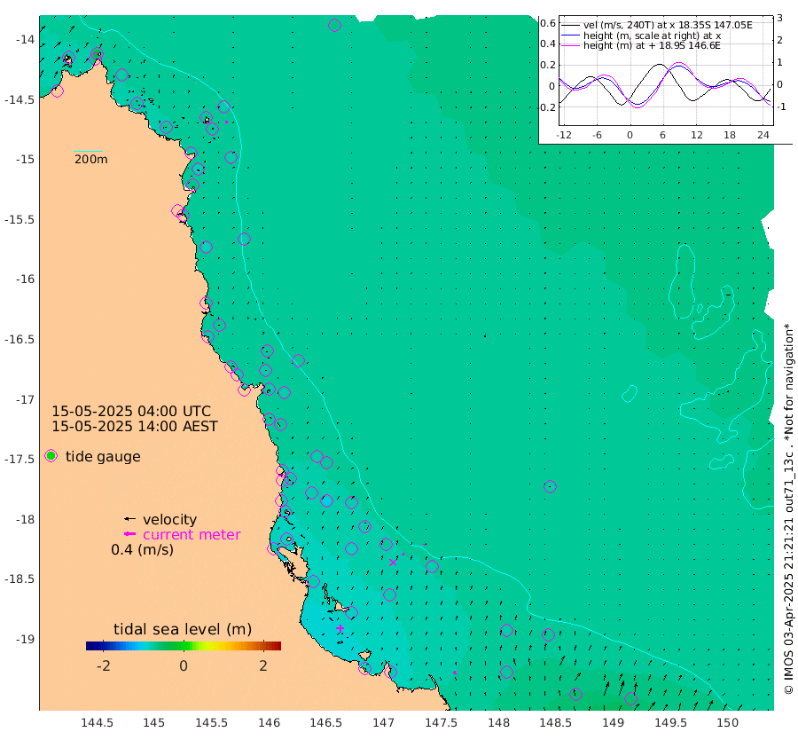 1cm/s 76T +11cm/s rms + 4cm/s -61T. GBRLSL 354m 9cm/s 6T +15cm/s rms + 2cm/s -84T. GBRLSH 32m 8cm/s 10T +15cm/s rms + 5cm/s -155T. GBRPPS 72m 3cm/s 33T +17cm/s rms + 13cm/s 115T. GBRMYR 223m 11cm/s -18T +18cm/s rms + 0cm/s -9T. NRSYON 29m -67cm Osprey Reef - West -74cm Stanley Island -35cm Pipon Islands -64cm Cape Melville -77cm Munro Reef -73cm Leggatt Island -75cm Normanby River -79cm Carter Reef -71cm Lizard Island (QLD) -72cm East Petherbridge Island -68cm North Direction Island -79cm Cape Flattery -79cm Ribbon Reef No.9 -90cm Low Wooded Island -67cm Cape Bedford -40cm Endeavour River North -75cm Cooktown -79cm Cruiser Passage -83cm East Hope Island -68cm Bailay Creek -72cm Low Islets -76cm Port Douglas -79cm Palm Cove -77cm Yorkeys Knob -72cm Michaelmas Cay -70cm Euston Reef -77cm Cairns -79cm Green Island -77cm Fitzroy Island -77cm Sudbury Cay -74cm High Island -74cm Russell Island -78cm Peart Reef -74cm Nathan Reef -76cm Mourilyan Harbour -75cm Cowley Beach -68cm North Barnard Island -78cm Eddy Reef -103cm Beaver Reef -77cm Unnamed Reef No. 1 -77cm Flinders Reef -79cm Clump Point -83cm Dunk Island -76cm Barnett Patches -83cm Goold Island -81cm Cardwell -84cm Britomart Reef -73cm Pith Reef -82cm Dip Reef -82cm Lucinda (Offshore) -81cm John Brewer Reef -85cm Albino Rock -78cm Shrimp Reef -71cm Jaguar Reef -85cm Townsville -82cm Cape Ferguson -68cm Stanley Reef -59cm Wallaby Reef -55cm Kennedy Reef