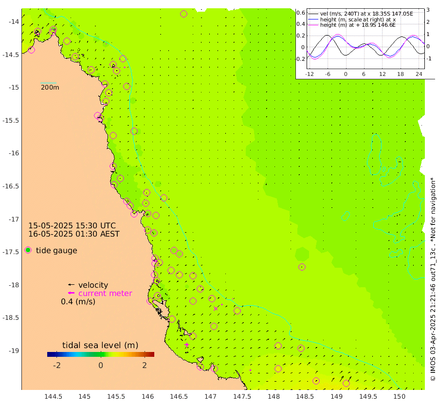 2cm/s -55T +11cm/s rms + 4cm/s -61T. GBRLSL 354m 6cm/s 33T +15cm/s rms + 2cm/s -84T. GBRLSH 32m 8cm/s 60T +15cm/s rms + 5cm/s -155T. GBRPPS 72m 3cm/s 43T +17cm/s rms + 13cm/s 115T. GBRMYR 223m 8cm/s 93T +18cm/s rms + 0cm/s -9T. NRSYON 29m 43cm Osprey Reef - West 47cm Stanley Island 29cm Pipon Islands 48cm Cape Melville 47cm Munro Reef 46cm Leggatt Island 42cm Normanby River 49cm Carter Reef 47cm Lizard Island (QLD) 50cm East Petherbridge Island 50cm North Direction Island 45cm Cape Flattery 45cm Ribbon Reef No.9 53cm Low Wooded Island 48cm Cape Bedford 29cm Endeavour River North 45cm Cooktown 44cm Cruiser Passage 46cm East Hope Island 53cm Bailay Creek 40cm Low Islets 45cm Port Douglas 43cm Palm Cove 40cm Yorkeys Knob 47cm Michaelmas Cay 46cm Euston Reef 46cm Cairns 40cm Green Island 33cm Fitzroy Island 43cm Sudbury Cay 44cm High Island 33cm Russell Island 37cm Peart Reef 36cm Nathan Reef 47cm Mourilyan Harbour 47cm Cowley Beach 49cm North Barnard Island 51cm Eddy Reef 58cm Beaver Reef 46cm Unnamed Reef No. 1 39cm Flinders Reef 47cm Clump Point 47cm Dunk Island 48cm Barnett Patches 49cm Goold Island 55cm Cardwell 43cm Britomart Reef 50cm Pith Reef 46cm Dip Reef 50cm Lucinda (Offshore) 43cm John Brewer Reef 49cm Albino Rock 55cm Shrimp Reef 49cm Jaguar Reef 51cm Townsville 51cm Cape Ferguson 68cm Stanley Reef 72cm Wallaby Reef 66cm Kennedy Reef