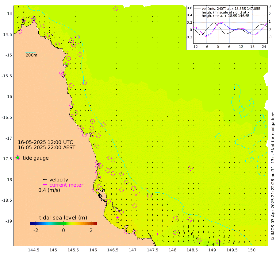 2cm/s -92T +11cm/s rms + 4cm/s -61T. GBRLSL 354m 14cm/s -171T +15cm/s rms + 2cm/s -84T. GBRLSH 32m 9cm/s -155T +15cm/s rms + 5cm/s -155T. GBRPPS 72m 5cm/s -140T +17cm/s rms + 13cm/s 115T. GBRMYR 223m 17cm/s 163T +18cm/s rms + 0cm/s -9T. NRSYON 29m 43cm Osprey Reef - West 44cm Stanley Island 29cm Pipon Islands 42cm Cape Melville 49cm Munro Reef 47cm Leggatt Island 49cm Normanby River 51cm Carter Reef 46cm Lizard Island (QLD) 40cm East Petherbridge Island 38cm North Direction Island 54cm Cape Flattery 51cm Ribbon Reef No.9 50cm Low Wooded Island 36cm Cape Bedford 24cm Endeavour River North 48cm Cooktown 50cm Cruiser Passage 56cm East Hope Island 35cm Bailay Creek 44cm Low Islets 49cm Port Douglas 52cm Palm Cove 50cm Yorkeys Knob 47cm Michaelmas Cay 46cm Euston Reef 51cm Cairns 53cm Green Island 65cm Fitzroy Island 54cm Sudbury Cay 47cm High Island 46cm Russell Island 50cm Peart Reef 49cm Nathan Reef 51cm Mourilyan Harbour 50cm Cowley Beach 48cm North Barnard Island 54cm Eddy Reef 67cm Beaver Reef 52cm Unnamed Reef No. 1 56cm Flinders Reef 54cm Clump Point 56cm Dunk Island 48cm Barnett Patches 56cm Goold Island 56cm Cardwell 56cm Britomart Reef 52cm Pith Reef 57cm Dip Reef 57cm Lucinda (Offshore) 55cm John Brewer Reef 62cm Albino Rock 55cm Shrimp Reef 54cm Jaguar Reef 60cm Townsville 58cm Cape Ferguson 42cm Stanley Reef 44cm Wallaby Reef 44cm Kennedy Reef