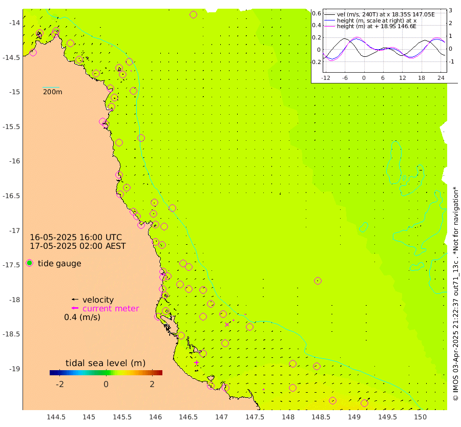 2cm/s -56T +11cm/s rms + 4cm/s -61T. GBRLSL 354m 3cm/s 45T +15cm/s rms + 2cm/s -84T. GBRLSH 32m 6cm/s 73T +15cm/s rms + 5cm/s -155T. GBRPPS 72m 2cm/s 51T +17cm/s rms + 13cm/s 115T. GBRMYR 223m 8cm/s 108T +18cm/s rms + 0cm/s -9T. NRSYON 29m 49cm Osprey Reef - West 56cm Stanley Island 37cm Pipon Islands 58cm Cape Melville 57cm Munro Reef 54cm Leggatt Island 51cm Normanby River 60cm Carter Reef 56cm Lizard Island (QLD) 59cm East Petherbridge Island 58cm North Direction Island 56cm Cape Flattery 52cm Ribbon Reef No.9 61cm Low Wooded Island 55cm Cape Bedford 29cm Endeavour River North 54cm Cooktown 52cm Cruiser Passage 58cm East Hope Island 60cm Bailay Creek 50cm Low Islets 54cm Port Douglas 53cm Palm Cove 49cm Yorkeys Knob 55cm Michaelmas Cay 56cm Euston Reef 55cm Cairns 49cm Green Island 48cm Fitzroy Island 53cm Sudbury Cay 53cm High Island 43cm Russell Island 47cm Peart Reef 46cm Nathan Reef 57cm Mourilyan Harbour 56cm Cowley Beach 59cm North Barnard Island 59cm Eddy Reef 71cm Beaver Reef 54cm Unnamed Reef No. 1 48cm Flinders Reef 57cm Clump Point 57cm Dunk Island 58cm Barnett Patches 59cm Goold Island 66cm Cardwell 54cm Britomart Reef 60cm Pith Reef 54cm Dip Reef 61cm Lucinda (Offshore) 55cm John Brewer Reef 60cm Albino Rock 66cm Shrimp Reef 58cm Jaguar Reef 62cm Townsville 62cm Cape Ferguson 75cm Stanley Reef 78cm Wallaby Reef 73cm Kennedy Reef