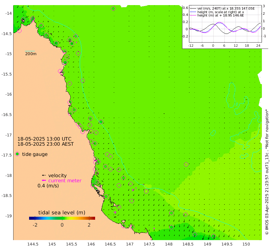 2cm/s -86T +11cm/s rms + 4cm/s -61T. GBRLSL 354m 12cm/s -166T +15cm/s rms + 2cm/s -84T. GBRLSH 32m 10cm/s -142T +15cm/s rms + 5cm/s -155T. GBRPPS 72m 5cm/s -135T +17cm/s rms + 13cm/s 115T. GBRMYR 223m 11cm/s -179T +18cm/s rms + 0cm/s -9T. NRSYON 29m 21cm Osprey Reef - West 11cm Stanley Island 5cm Pipon Islands 14cm Cape Melville 16cm Munro Reef 17cm Leggatt Island 15cm Normanby River 18cm Carter Reef 19cm Lizard Island (QLD) 6cm East Petherbridge Island 8cm North Direction Island 21cm Cape Flattery 24cm Ribbon Reef No.9 23cm Low Wooded Island 7cm Cape Bedford 15cm Endeavour River North 19cm Cooktown 25cm Cruiser Passage 23cm East Hope Island 5cm Bailay Creek 17cm Low Islets 19cm Port Douglas 23cm Palm Cove 25cm Yorkeys Knob 19cm Michaelmas Cay 14cm Euston Reef 20cm Cairns 26cm Green Island 36cm Fitzroy Island 26cm Sudbury Cay 23cm High Island 21cm Russell Island 24cm Peart Reef 25cm Nathan Reef 20cm Mourilyan Harbour 18cm Cowley Beach 18cm North Barnard Island 22cm Eddy Reef 26cm Beaver Reef 25cm Unnamed Reef No. 1 33cm Flinders Reef 21cm Clump Point 23cm Dunk Island 21cm Barnett Patches 22cm Goold Island 15cm Cardwell 25cm Britomart Reef 23cm Pith Reef 33cm Dip Reef 20cm Lucinda (Offshore) 23cm John Brewer Reef 24cm Albino Rock 22cm Shrimp Reef 23cm Jaguar Reef 20cm Townsville 21cm Cape Ferguson 9cm Stanley Reef 10cm Wallaby Reef 12cm Kennedy Reef
