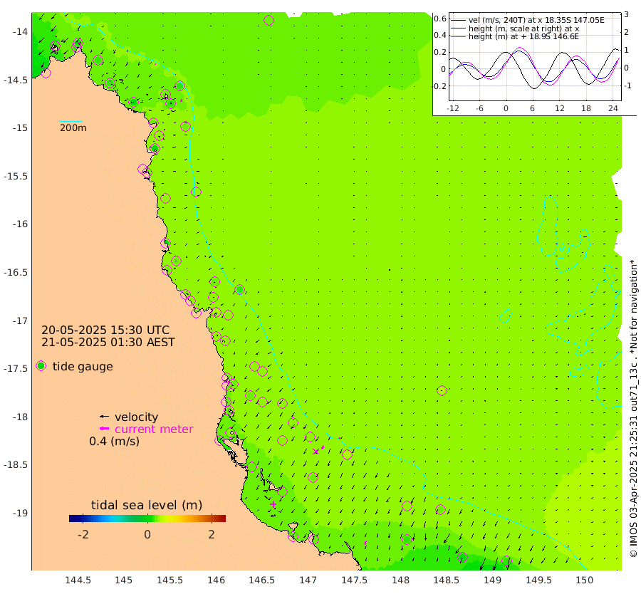 3cm/s -78T +11cm/s rms + 4cm/s -61T. GBRLSL 354m 12cm/s -161T +15cm/s rms + 2cm/s -84T. GBRLSH 32m 15cm/s -144T +15cm/s rms + 5cm/s -155T. GBRPPS 72m 7cm/s -143T +17cm/s rms + 13cm/s 115T. GBRMYR 223m 13cm/s -170T +18cm/s rms + 0cm/s -9T. NRSYON 29m 26cm Osprey Reef - West 15cm Stanley Island 14cm Pipon Islands 21cm Cape Melville 20cm Munro Reef 21cm Leggatt Island 17cm Normanby River 22cm Carter Reef 27cm Lizard Island (QLD) 12cm East Petherbridge Island 16cm North Direction Island 26cm Cape Flattery 29cm Ribbon Reef No.9 35cm Low Wooded Island 15cm Cape Bedford 18cm Endeavour River North 26cm Cooktown 32cm Cruiser Passage 33cm East Hope Island 13cm Bailay Creek 25cm Low Islets 26cm Port Douglas 31cm Palm Cove 33cm Yorkeys Knob 25cm Michaelmas Cay 22cm Euston Reef 27cm Cairns 33cm Green Island 43cm Fitzroy Island 32cm Sudbury Cay 36cm High Island 32cm Russell Island 32cm Peart Reef 33cm Nathan Reef 26cm Mourilyan Harbour 25cm Cowley Beach 25cm North Barnard Island 26cm Eddy Reef 34cm Beaver Reef 31cm Unnamed Reef No. 1 38cm Flinders Reef 28cm Clump Point 30cm Dunk Island 30cm Barnett Patches 30cm Goold Island 19cm Cardwell 36cm Britomart Reef 33cm Pith Reef 40cm Dip Reef 26cm Lucinda (Offshore) 30cm John Brewer Reef 27cm Albino Rock 31cm Shrimp Reef 30cm Jaguar Reef 27cm Townsville 28cm Cape Ferguson 17cm Stanley Reef 12cm Wallaby Reef 19cm Kennedy Reef