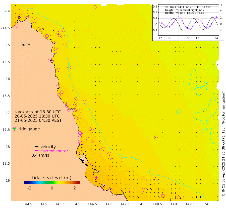 2cm/s -62T +11cm/s rms + 4cm/s -61T. GBRLSL 354m 8cm/s -179T +15cm/s rms + 2cm/s -84T. GBRLSH 32m 6cm/s 145T +15cm/s rms + 5cm/s -155T. GBRPPS 72m 2cm/s 160T +17cm/s rms + 13cm/s 115T. GBRMYR 223m 18cm/s 141T +18cm/s rms + 0cm/s -9T. NRSYON 29m 73cm Osprey Reef - West 92cm Stanley Island 73cm Pipon Islands 88cm Cape Melville 93cm Munro Reef 88cm Leggatt Island 98cm Normanby River 90cm Carter Reef 90cm Lizard Island (QLD) 91cm East Petherbridge Island 87cm North Direction Island 92cm Cape Flattery 83cm Ribbon Reef No.9 93cm Low Wooded Island 81cm Cape Bedford 45cm Endeavour River North 89cm Cooktown 82cm Cruiser Passage 97cm East Hope Island 86cm Bailay Creek 87cm Low Islets 91cm Port Douglas 91cm Palm Cove 89cm Yorkeys Knob 84cm Michaelmas Cay 78cm Euston Reef 93cm Cairns 86cm Green Island 95cm Fitzroy Island 89cm Sudbury Cay 90cm High Island 82cm Russell Island 91cm Peart Reef 87cm Nathan Reef 92cm Mourilyan Harbour 95cm Cowley Beach 98cm North Barnard Island 89cm Eddy Reef 122cm Beaver Reef 88cm Unnamed Reef No. 1 79cm Flinders Reef 97cm Clump Point 99cm Dunk Island 94cm Barnett Patches 103cm Goold Island 111cm Cardwell 99cm Britomart Reef 92cm Pith Reef 85cm Dip Reef 106cm Lucinda (Offshore) 102cm John Brewer Reef 104cm Albino Rock 99cm Shrimp Reef 86cm Jaguar Reef 111cm Townsville 107cm Cape Ferguson 100cm Stanley Reef 96cm Wallaby Reef 91cm Kennedy Reef