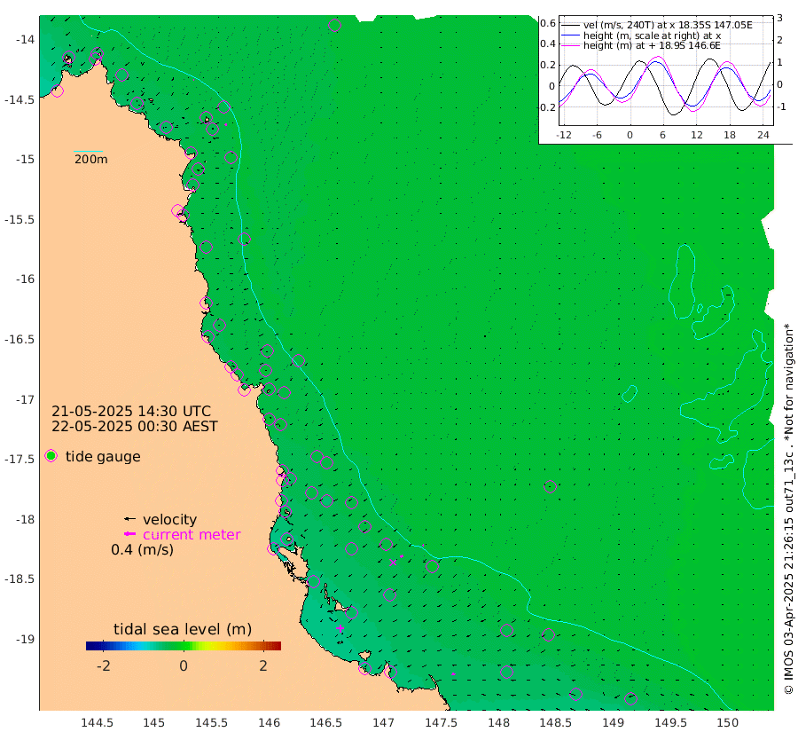3cm/s -79T +11cm/s rms + 4cm/s -61T. GBRLSL 354m 6cm/s -144T +15cm/s rms + 2cm/s -84T. GBRLSH 32m 11cm/s -121T +15cm/s rms + 5cm/s -155T. GBRPPS 72m 4cm/s -119T +17cm/s rms + 13cm/s 115T. GBRMYR 223m 11cm/s -78T +18cm/s rms + 0cm/s -9T. NRSYON 29m -25cm Osprey Reef - West -48cm Stanley Island -46cm Pipon Islands -39cm Cape Melville -45cm Munro Reef -42cm Leggatt Island -52cm Normanby River -42cm Carter Reef -36cm Lizard Island (QLD) -47cm East Petherbridge Island -40cm North Direction Island -39cm Cape Flattery -28cm Ribbon Reef No.9 -25cm Low Wooded Island -38cm Cape Bedford -9cm Endeavour River North -36cm Cooktown -24cm Cruiser Passage -37cm East Hope Island -43cm Bailay Creek -36cm Low Islets -39cm Port Douglas -34cm Palm Cove -32cm Yorkeys Knob -34cm Michaelmas Cay -33cm Euston Reef -40cm Cairns -29cm Green Island -33cm Fitzroy Island -33cm Sudbury Cay -29cm High Island -26cm Russell Island -33cm Peart Reef -31cm Nathan Reef -40cm Mourilyan Harbour -42cm Cowley Beach -46cm North Barnard Island -37cm Eddy Reef -53cm Beaver Reef -32cm Unnamed Reef No. 1 -19cm Flinders Reef -43cm Clump Point -43cm Dunk Island -34cm Barnett Patches -45cm Goold Island -61cm Cardwell -38cm Britomart Reef -32cm Pith Reef -20cm Dip Reef -52cm Lucinda (Offshore) -45cm John Brewer Reef -49cm Albino Rock -39cm Shrimp Reef -33cm Jaguar Reef -56cm Townsville -50cm Cape Ferguson -49cm Stanley Reef -51cm Wallaby Reef -45cm Kennedy Reef