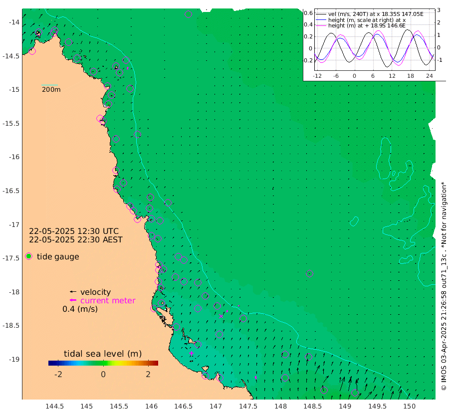 2cm/s -74T +11cm/s rms + 4cm/s -61T. GBRLSL 354m 15cm/s 10T +15cm/s rms + 2cm/s -84T. GBRLSH 32m 12cm/s 22T +15cm/s rms + 5cm/s -155T. GBRPPS 72m 6cm/s 24T +17cm/s rms + 13cm/s 115T. GBRMYR 223m 18cm/s -12T +18cm/s rms + 0cm/s -9T. NRSYON 29m -37cm Osprey Reef - West -45cm Stanley Island -57cm Pipon Islands -44cm Cape Melville -48cm Munro Reef -46cm Leggatt Island -50cm Normanby River -48cm Carter Reef -46cm Lizard Island (QLD) -40cm East Petherbridge Island -40cm North Direction Island -46cm Cape Flattery -41cm Ribbon Reef No.9 -43cm Low Wooded Island -36cm Cape Bedford -14cm Endeavour River North -47cm Cooktown -41cm Cruiser Passage -56cm East Hope Island -38cm Bailay Creek -48cm Low Islets -51cm Port Douglas -53cm Palm Cove -54cm Yorkeys Knob -42cm Michaelmas Cay -43cm Euston Reef -52cm Cairns -51cm Green Island -65cm Fitzroy Island -50cm Sudbury Cay -54cm High Island -49cm Russell Island -53cm Peart Reef -54cm Nathan Reef -50cm Mourilyan Harbour -52cm Cowley Beach -47cm North Barnard Island -46cm Eddy Reef -67cm Beaver Reef -49cm Unnamed Reef No. 1 -44cm Flinders Reef -55cm Clump Point -56cm Dunk Island -49cm Barnett Patches -59cm Goold Island -59cm Cardwell -64cm Britomart Reef -49cm Pith Reef -45cm Dip Reef -59cm Lucinda (Offshore) -56cm John Brewer Reef -59cm Albino Rock -51cm Shrimp Reef -49cm Jaguar Reef -65cm Townsville -62cm Cape Ferguson -39cm Stanley Reef -30cm Wallaby Reef -39cm Kennedy Reef