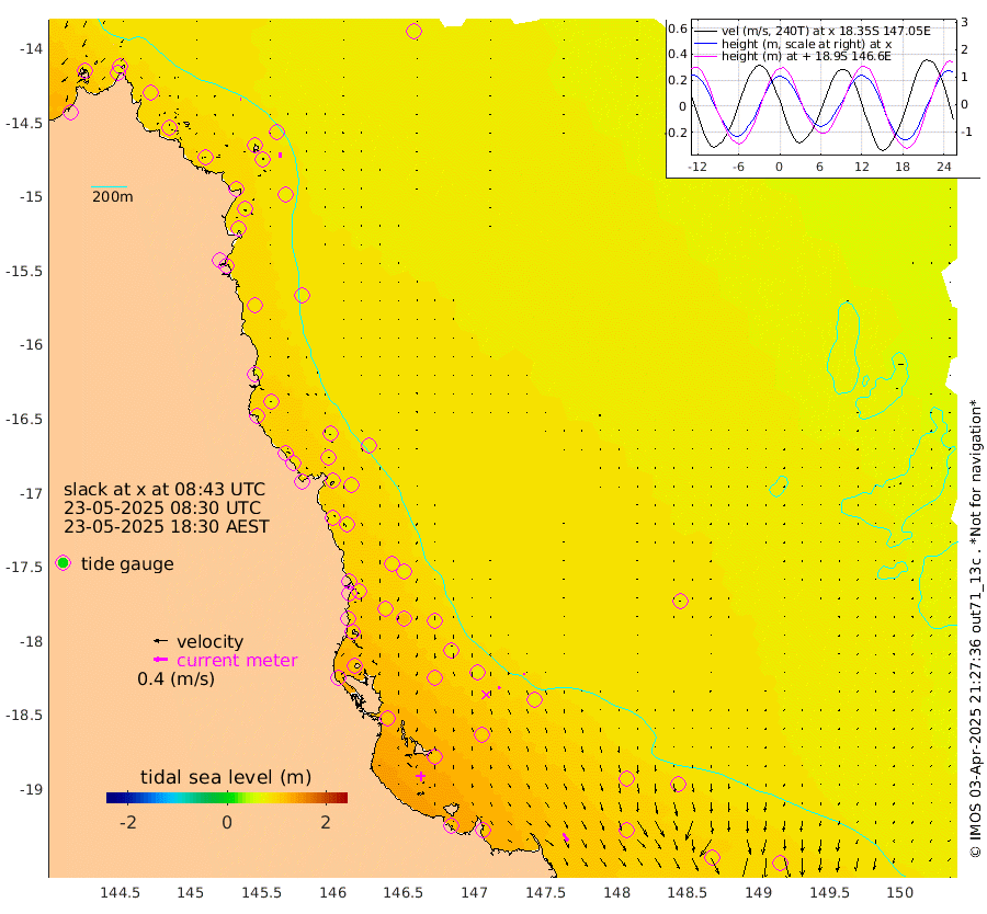 2cm/s 107T +11cm/s rms + 4cm/s -61T. GBRLSL 354m 13cm/s -179T +15cm/s rms + 2cm/s -84T. GBRLSH 32m 8cm/s 157T +15cm/s rms + 5cm/s -155T. GBRPPS 72m 4cm/s 173T +17cm/s rms + 13cm/s 115T. GBRMYR 223m 25cm/s 147T +18cm/s rms + 0cm/s -9T. NRSYON 29m 70cm Osprey Reef - West 89cm Stanley Island 77cm Pipon Islands 77cm Cape Melville 86cm Munro Reef 85cm Leggatt Island 97cm Normanby River 84cm Carter Reef 81cm Lizard Island (QLD) 83cm East Petherbridge Island 77cm North Direction Island 88cm Cape Flattery 78cm Ribbon Reef No.9 78cm Low Wooded Island 76cm Cape Bedford 40cm Endeavour River North 84cm Cooktown 75cm Cruiser Passage 87cm East Hope Island 73cm Bailay Creek 78cm Low Islets 88cm Port Douglas 88cm Palm Cove 85cm Yorkeys Knob 80cm Michaelmas Cay 76cm Euston Reef 91cm Cairns 84cm Green Island 87cm Fitzroy Island 83cm Sudbury Cay 83cm High Island 78cm Russell Island 87cm Peart Reef 81cm Nathan Reef 90cm Mourilyan Harbour 94cm Cowley Beach 89cm North Barnard Island 87cm Eddy Reef 115cm Beaver Reef 85cm Unnamed Reef No. 1 75cm Flinders Reef 97cm Clump Point 102cm Dunk Island 82cm Barnett Patches 105cm Goold Island 114cm Cardwell 99cm Britomart Reef 81cm Pith Reef 79cm Dip Reef 108cm Lucinda (Offshore) 99cm John Brewer Reef 108cm Albino Rock 90cm Shrimp Reef 86cm Jaguar Reef 117cm Townsville 110cm Cape Ferguson 93cm Stanley Reef 88cm Wallaby Reef 93cm Kennedy Reef