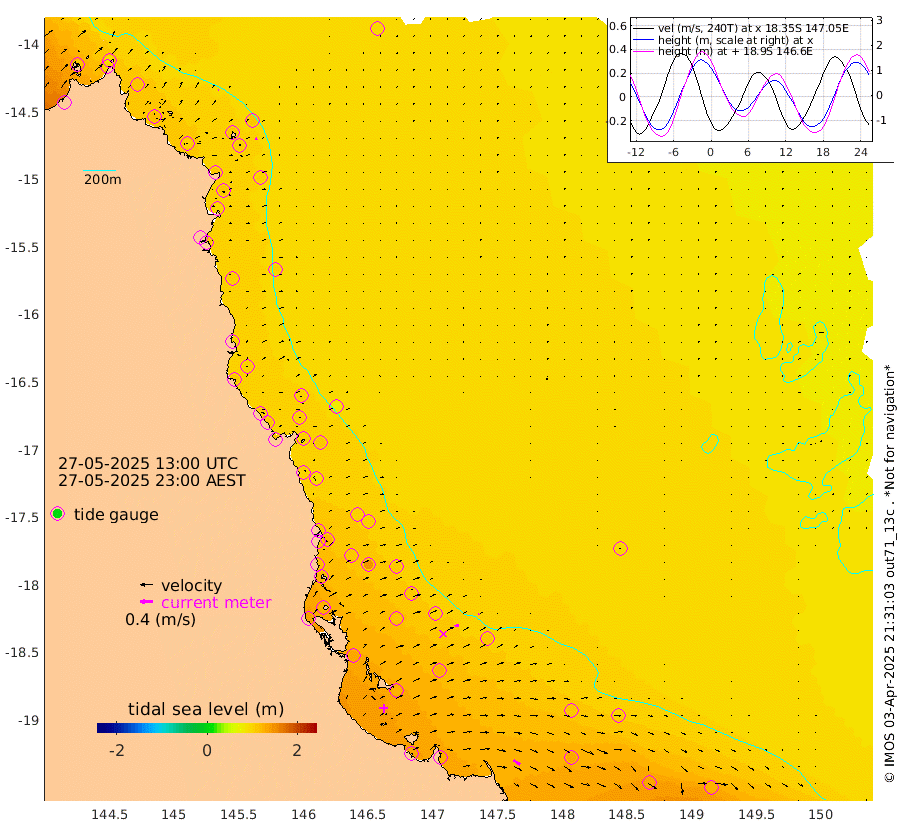 2cm/s -71T +11cm/s rms + 4cm/s -61T. GBRLSL 354m 5cm/s 65T +15cm/s rms + 2cm/s -84T. GBRLSH 32m 14cm/s 75T +15cm/s rms + 5cm/s -155T. GBRPPS 72m 4cm/s 73T +17cm/s rms + 13cm/s 115T. GBRMYR 223m 25cm/s 122T +18cm/s rms + 0cm/s -9T. NRSYON 29m 95cm Osprey Reef - West 112cm Stanley Island 86cm Pipon Islands 104cm Cape Melville 112cm Munro Reef 113cm Leggatt Island 121cm Normanby River 109cm Carter Reef 106cm Lizard Island (QLD) 103cm East Petherbridge Island 98cm North Direction Island 108cm Cape Flattery 103cm Ribbon Reef No.9 106cm Low Wooded Island 92cm Cape Bedford 66cm Endeavour River North 105cm Cooktown 99cm Cruiser Passage 102cm East Hope Island 98cm Bailay Creek 98cm Low Islets 107cm Port Douglas 106cm Palm Cove 107cm Yorkeys Knob 103cm Michaelmas Cay 79cm Euston Reef 111cm Cairns 99cm Green Island 104cm Fitzroy Island 105cm Sudbury Cay 104cm High Island 86cm Russell Island 105cm Peart Reef 102cm Nathan Reef 112cm Mourilyan Harbour 109cm Cowley Beach 123cm North Barnard Island 111cm Eddy Reef 144cm Beaver Reef 108cm Unnamed Reef No. 1 92cm Flinders Reef 116cm Clump Point 122cm Dunk Island 107cm Barnett Patches 125cm Goold Island 139cm Cardwell 110cm Britomart Reef 103cm Pith Reef 106cm Dip Reef 128cm Lucinda (Offshore) 121cm John Brewer Reef 125cm Albino Rock 112cm Shrimp Reef 101cm Jaguar Reef 133cm Townsville 127cm Cape Ferguson 133cm Stanley Reef 135cm Wallaby Reef 125cm Kennedy Reef