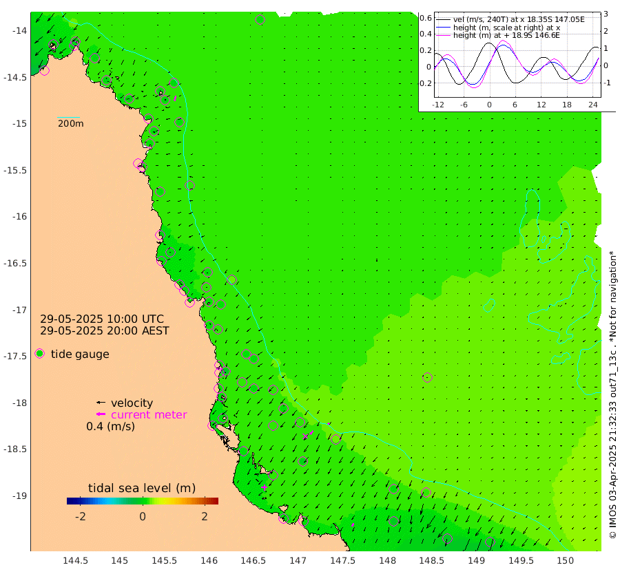 1cm/s -174T +11cm/s rms + 4cm/s -61T. GBRLSL 354m 23cm/s -161T +15cm/s rms + 2cm/s -84T. GBRLSH 32m 20cm/s -138T +15cm/s rms + 5cm/s -155T. GBRPPS 72m 9cm/s -137T +17cm/s rms + 13cm/s 115T. GBRMYR 223m 15cm/s -154T +18cm/s rms + 0cm/s -9T. NRSYON 29m 15cm Osprey Reef - West 0cm Stanley Island -12cm Pipon Islands -3cm Cape Melville 1cm Munro Reef 1cm Leggatt Island 1cm Normanby River 0cm Carter Reef 5cm Lizard Island (QLD) 5cm East Petherbridge Island 7cm North Direction Island 9cm Cape Flattery 14cm Ribbon Reef No.9 13cm Low Wooded Island 8cm Cape Bedford 16cm Endeavour River North 9cm Cooktown 17cm Cruiser Passage 14cm East Hope Island -2cm Bailay Creek 7cm Low Islets 10cm Port Douglas 14cm Palm Cove 12cm Yorkeys Knob 8cm Michaelmas Cay 27cm Euston Reef 9cm Cairns 20cm Green Island 10cm Fitzroy Island 14cm Sudbury Cay 9cm High Island 20cm Russell Island 12cm Peart Reef 11cm Nathan Reef 9cm Mourilyan Harbour 14cm Cowley Beach -11cm North Barnard Island 16cm Eddy Reef 12cm Beaver Reef 17cm Unnamed Reef No. 1 25cm Flinders Reef 11cm Clump Point 7cm Dunk Island 14cm Barnett Patches 11cm Goold Island -2cm Cardwell 16cm Britomart Reef 16cm Pith Reef 23cm Dip Reef 8cm Lucinda (Offshore) -2cm John Brewer Reef 18cm Albino Rock 11cm Shrimp Reef 21cm Jaguar Reef 11cm Townsville 12cm Cape Ferguson -10cm Stanley Reef -12cm Wallaby Reef 1cm Kennedy Reef