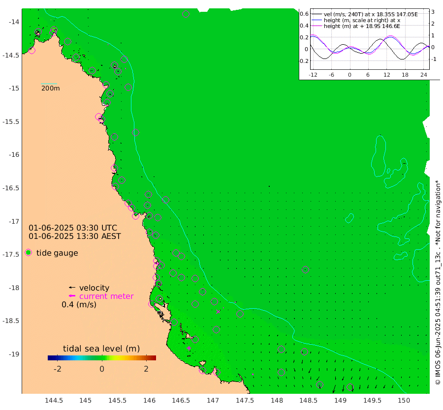 2cm/s 109T +11cm/s rms + 4cm/s -61T. GBRLSL 354m 2cm/s -132T +15cm/s rms + 2cm/s -84T. GBRLSH 32m 2cm/s -144T +15cm/s rms + 5cm/s -155T. GBRPPS 72m 2cm/s -161T +17cm/s rms + 13cm/s 115T. GBRMYR 223m 7cm/s 164T +18cm/s rms + 0cm/s -9T. NRSYON 29m -13cm Osprey Reef - West -19cm Stanley Island 20cm Pipon Islands -12cm Cape Melville -20cm Munro Reef -13cm Leggatt Island -14cm Normanby River -21cm Carter Reef -17cm Lizard Island (QLD) -22cm East Petherbridge Island -20cm North Direction Island -19cm Cape Flattery -21cm Ribbon Reef No.9 -26cm Low Wooded Island -19cm Cape Bedford -14cm Endeavour River North -16cm Cooktown -21cm Cruiser Passage -22cm East Hope Island -24cm Bailay Creek -16cm Low Islets -13cm Port Douglas -13cm Palm Cove -13cm Yorkeys Knob -17cm Michaelmas Cay -17cm Euston Reef -13cm Cairns -18cm Green Island -9cm Fitzroy Island -16cm Sudbury Cay -10cm High Island -17cm Russell Island -17cm Peart Reef -12cm Nathan Reef -13cm Mourilyan Harbour -14cm Cowley Beach -14cm North Barnard Island -13cm Eddy Reef -22cm Beaver Reef -14cm Unnamed Reef No. 1 -18cm Flinders Reef -12cm Clump Point -13cm Dunk Island -20cm Barnett Patches -11cm Goold Island -9cm Cardwell -11cm Britomart Reef -15cm Pith Reef -18cm Dip Reef -9cm Lucinda (Offshore) -17cm John Brewer Reef -11cm Albino Rock -19cm Shrimp Reef -12cm Jaguar Reef -7cm Townsville -8cm Cape Ferguson -16cm Stanley Reef -16cm Wallaby Reef 2cm Kennedy Reef