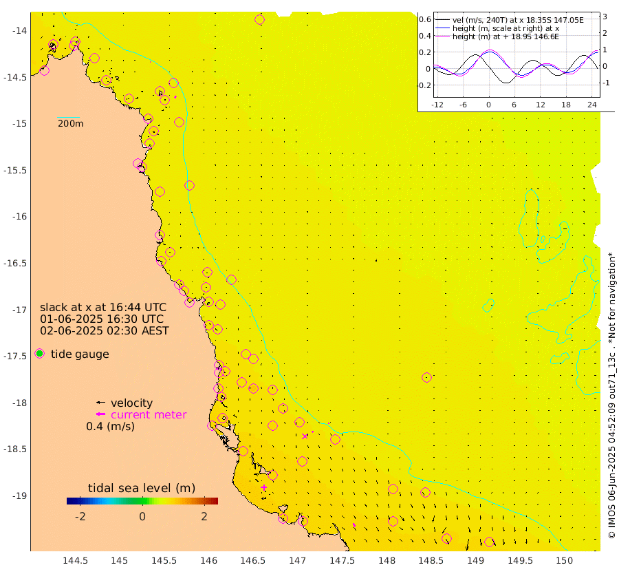 2cm/s -67T +11cm/s rms + 4cm/s -61T. GBRLSL 354m 9cm/s -170T +15cm/s rms + 2cm/s -84T. GBRLSH 32m 6cm/s 169T +15cm/s rms + 5cm/s -155T. GBRPPS 72m 3cm/s -168T +17cm/s rms + 13cm/s 115T. GBRMYR 223m 17cm/s 146T +18cm/s rms + 0cm/s -9T. NRSYON 29m 76cm Osprey Reef - West 78cm Stanley Island 66cm Pipon Islands 77cm Cape Melville 79cm Munro Reef 80cm Leggatt Island 86cm Normanby River 78cm Carter Reef 81cm Lizard Island (QLD) 79cm East Petherbridge Island 78cm North Direction Island 78cm Cape Flattery 80cm Ribbon Reef No.9 96cm Low Wooded Island 73cm Cape Bedford 54cm Endeavour River North 80cm Cooktown 82cm Cruiser Passage 80cm East Hope Island 80cm Bailay Creek 75cm Low Islets 82cm Port Douglas 85cm Palm Cove 86cm Yorkeys Knob 78cm Michaelmas Cay 67cm Euston Reef 84cm Cairns 80cm Green Island 75cm Fitzroy Island 79cm Sudbury Cay 86cm High Island 73cm Russell Island 82cm Peart Reef 80cm Nathan Reef 84cm Mourilyan Harbour 85cm Cowley Beach 83cm North Barnard Island 85cm Eddy Reef 109cm Beaver Reef 85cm Unnamed Reef No. 1 74cm Flinders Reef 88cm Clump Point 91cm Dunk Island 88cm Barnett Patches 96cm Goold Island 96cm Cardwell 92cm Britomart Reef 85cm Pith Reef 87cm Dip Reef 94cm Lucinda (Offshore) 84cm John Brewer Reef 93cm Albino Rock 87cm Shrimp Reef 80cm Jaguar Reef 99cm Townsville 96cm Cape Ferguson 97cm Stanley Reef 89cm Wallaby Reef 88cm Kennedy Reef