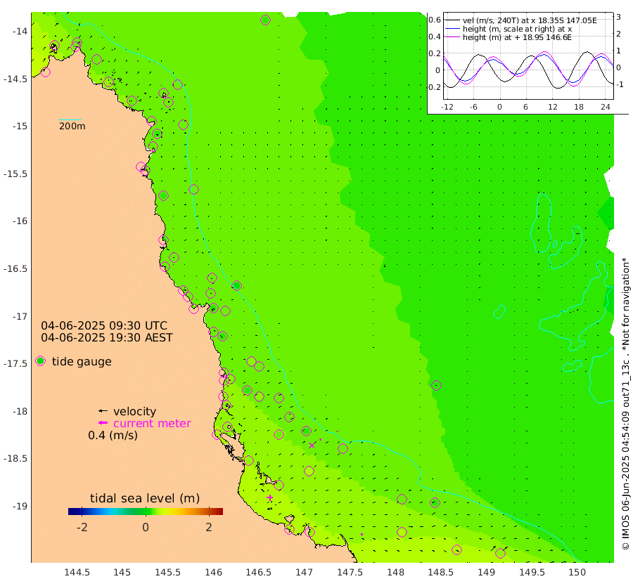 0cm/s 126T +11cm/s rms + 4cm/s -61T. GBRLSL 354m 1cm/s 61T +15cm/s rms + 2cm/s -84T. GBRLSH 32m 7cm/s 62T +15cm/s rms + 5cm/s -155T. GBRPPS 72m 3cm/s 72T +17cm/s rms + 13cm/s 115T. GBRMYR 223m 6cm/s 97T +18cm/s rms + 0cm/s -9T. NRSYON 29m 22cm Osprey Reef - West 33cm Stanley Island 23cm Pipon Islands 25cm Cape Melville 28cm Munro Reef 31cm Leggatt Island 39cm Normanby River 25cm Carter Reef 26cm Lizard Island (QLD) 27cm East Petherbridge Island 24cm North Direction Island 27cm Cape Flattery 25cm Ribbon Reef No.9 20cm Low Wooded Island 24cm Cape Bedford 19cm Endeavour River North 27cm Cooktown 23cm Cruiser Passage 17cm East Hope Island 20cm Bailay Creek 23cm Low Islets 27cm Port Douglas 27cm Palm Cove 30cm Yorkeys Knob 25cm Michaelmas Cay 9cm Euston Reef 28cm Cairns 25cm Green Island 19cm Fitzroy Island 23cm Sudbury Cay 24cm High Island 22cm Russell Island 32cm Peart Reef 28cm Nathan Reef 29cm Mourilyan Harbour 29cm Cowley Beach 34cm North Barnard Island 22cm Eddy Reef 35cm Beaver Reef 27cm Unnamed Reef No. 1 22cm Flinders Reef 31cm Clump Point 36cm Dunk Island 25cm Barnett Patches 36cm Goold Island 41cm Cardwell 29cm Britomart Reef 17cm Pith Reef 24cm Dip Reef 37cm Lucinda (Offshore) 38cm John Brewer Reef 33cm Albino Rock 23cm Shrimp Reef 20cm Jaguar Reef 39cm Townsville 36cm Cape Ferguson 40cm Stanley Reef 39cm Wallaby Reef 33cm Kennedy Reef