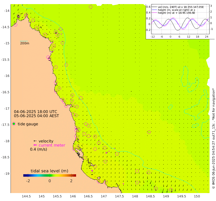 2cm/s -70T +11cm/s rms + 4cm/s -61T. GBRLSL 354m 11cm/s -166T +15cm/s rms + 2cm/s -84T. GBRLSH 32m 9cm/s -158T +15cm/s rms + 5cm/s -155T. GBRPPS 72m 5cm/s -153T +17cm/s rms + 13cm/s 115T. GBRMYR 223m 13cm/s 166T +18cm/s rms + 0cm/s -9T. NRSYON 29m 45cm Osprey Reef - West 46cm Stanley Island 40cm Pipon Islands 48cm Cape Melville 47cm Munro Reef 45cm Leggatt Island 48cm Normanby River 48cm Carter Reef 49cm Lizard Island (QLD) 53cm East Petherbridge Island 52cm North Direction Island 51cm Cape Flattery 50cm Ribbon Reef No.9 65cm Low Wooded Island 50cm Cape Bedford 24cm Endeavour River North 50cm Cooktown 52cm Cruiser Passage 54cm East Hope Island 50cm Bailay Creek 47cm Low Islets 51cm Port Douglas 54cm Palm Cove 50cm Yorkeys Knob 46cm Michaelmas Cay 54cm Euston Reef 53cm Cairns 50cm Green Island 47cm Fitzroy Island 49cm Sudbury Cay 51cm High Island 47cm Russell Island 49cm Peart Reef 47cm Nathan Reef 52cm Mourilyan Harbour 55cm Cowley Beach 40cm North Barnard Island 56cm Eddy Reef 66cm Beaver Reef 53cm Unnamed Reef No. 1 50cm Flinders Reef 55cm Clump Point 53cm Dunk Island 55cm Barnett Patches 58cm Goold Island 57cm Cardwell 60cm Britomart Reef 55cm Pith Reef 55cm Dip Reef 58cm Lucinda (Offshore) 47cm John Brewer Reef 60cm Albino Rock 56cm Shrimp Reef 52cm Jaguar Reef 62cm Townsville 60cm Cape Ferguson 51cm Stanley Reef 46cm Wallaby Reef 52cm Kennedy Reef