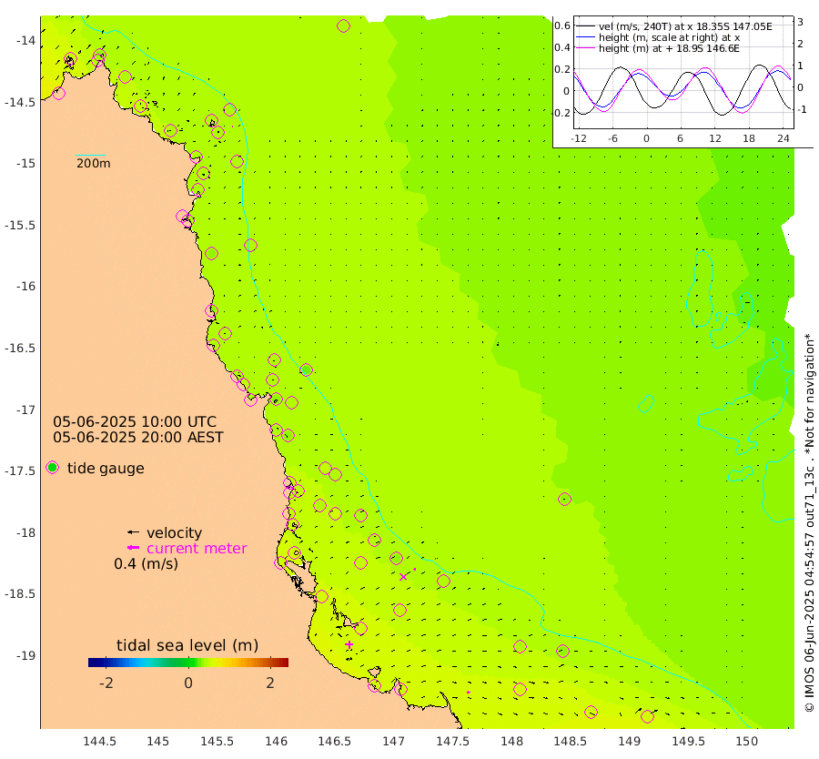 0cm/s 135T +11cm/s rms + 4cm/s -61T. GBRLSL 354m 2cm/s 73T +15cm/s rms + 2cm/s -84T. GBRLSH 32m 8cm/s 67T +15cm/s rms + 5cm/s -155T. GBRPPS 72m 3cm/s 79T +17cm/s rms + 13cm/s 115T. GBRMYR 223m 9cm/s 109T +18cm/s rms + 0cm/s -9T. NRSYON 29m 40cm Osprey Reef - West 49cm Stanley Island 34cm Pipon Islands 39cm Cape Melville 43cm Munro Reef 47cm Leggatt Island 56cm Normanby River 39cm Carter Reef 41cm Lizard Island (QLD) 43cm East Petherbridge Island 40cm North Direction Island 42cm Cape Flattery 42cm Ribbon Reef No.9 38cm Low Wooded Island 39cm Cape Bedford 34cm Endeavour River North 42cm Cooktown 39cm Cruiser Passage 31cm East Hope Island 35cm Bailay Creek 38cm Low Islets 44cm Port Douglas 44cm Palm Cove 46cm Yorkeys Knob 40cm Michaelmas Cay 23cm Euston Reef 45cm Cairns 40cm Green Island 31cm Fitzroy Island 39cm Sudbury Cay 40cm High Island 35cm Russell Island 47cm Peart Reef 43cm Nathan Reef 46cm Mourilyan Harbour 45cm Cowley Beach 48cm North Barnard Island 41cm Eddy Reef 57cm Beaver Reef 44cm Unnamed Reef No. 1 36cm Flinders Reef 48cm Clump Point 53cm Dunk Island 42cm Barnett Patches 55cm Goold Island 60cm Cardwell 45cm Britomart Reef 34cm Pith Reef 42cm Dip Reef 55cm Lucinda (Offshore) 52cm John Brewer Reef 53cm Albino Rock 39cm Shrimp Reef 36cm Jaguar Reef 58cm Townsville 55cm Cape Ferguson 58cm Stanley Reef 57cm Wallaby Reef 53cm Kennedy Reef