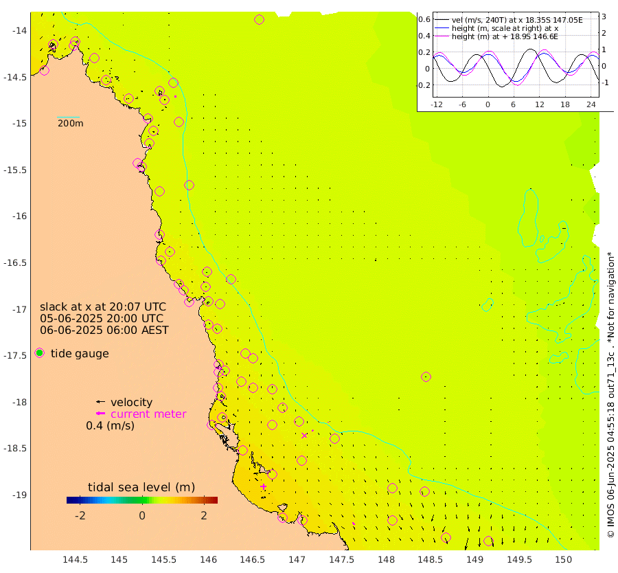0cm/s -66T +11cm/s rms + 4cm/s -61T. GBRLSL 354m 6cm/s 179T +15cm/s rms + 2cm/s -84T. GBRLSH 32m 4cm/s 138T +15cm/s rms + 5cm/s -155T. GBRPPS 72m 2cm/s 174T +17cm/s rms + 13cm/s 115T. GBRMYR 223m 13cm/s 141T +18cm/s rms + 0cm/s -9T. NRSYON 29m 50cm Osprey Reef - West 61cm Stanley Island 55cm Pipon Islands 56cm Cape Melville 60cm Munro Reef 58cm Leggatt Island 70cm Normanby River 56cm Carter Reef 56cm Lizard Island (QLD) 66cm East Petherbridge Island 61cm North Direction Island 59cm Cape Flattery 57cm Ribbon Reef No.9 69cm Low Wooded Island 58cm Cape Bedford 28cm Endeavour River North 58cm Cooktown 56cm Cruiser Passage 56cm East Hope Island 62cm Bailay Creek 55cm Low Islets 60cm Port Douglas 61cm Palm Cove 58cm Yorkeys Knob 52cm Michaelmas Cay 52cm Euston Reef 62cm Cairns 54cm Green Island 49cm Fitzroy Island 54cm Sudbury Cay 54cm High Island 49cm Russell Island 58cm Peart Reef 54cm Nathan Reef 61cm Mourilyan Harbour 64cm Cowley Beach 52cm North Barnard Island 64cm Eddy Reef 79cm Beaver Reef 59cm Unnamed Reef No. 1 48cm Flinders Reef 65cm Clump Point 64cm Dunk Island 62cm Barnett Patches 69cm Goold Island 76cm Cardwell 67cm Britomart Reef 57cm Pith Reef 56cm Dip Reef 72cm Lucinda (Offshore) 58cm John Brewer Reef 74cm Albino Rock 59cm Shrimp Reef 53cm Jaguar Reef 77cm Townsville 73cm Cape Ferguson 66cm Stanley Reef 60cm Wallaby Reef 60cm Kennedy Reef