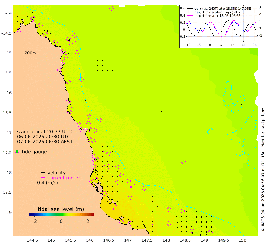 0cm/s -80T +11cm/s rms + 4cm/s -61T. GBRLSL 354m 5cm/s 176T +15cm/s rms + 2cm/s -84T. GBRLSH 32m 4cm/s 134T +15cm/s rms + 5cm/s -155T. GBRPPS 72m 2cm/s 176T +17cm/s rms + 13cm/s 115T. GBRMYR 223m 13cm/s 142T +18cm/s rms + 0cm/s -9T. NRSYON 29m 42cm Osprey Reef - West 53cm Stanley Island 50cm Pipon Islands 49cm Cape Melville 53cm Munro Reef 50cm Leggatt Island 62cm Normanby River 47cm Carter Reef 48cm Lizard Island (QLD) 59cm East Petherbridge Island 54cm North Direction Island 53cm Cape Flattery 48cm Ribbon Reef No.9 58cm Low Wooded Island 50cm Cape Bedford 21cm Endeavour River North 50cm Cooktown 47cm Cruiser Passage 49cm East Hope Island 52cm Bailay Creek 48cm Low Islets 52cm Port Douglas 52cm Palm Cove 48cm Yorkeys Knob 44cm Michaelmas Cay 46cm Euston Reef 54cm Cairns 45cm Green Island 43cm Fitzroy Island 47cm Sudbury Cay 44cm High Island 41cm Russell Island 48cm Peart Reef 46cm Nathan Reef 53cm Mourilyan Harbour 56cm Cowley Beach 43cm North Barnard Island 57cm Eddy Reef 68cm Beaver Reef 50cm Unnamed Reef No. 1 41cm Flinders Reef 56cm Clump Point 54cm Dunk Island 52cm Barnett Patches 59cm Goold Island 68cm Cardwell 57cm Britomart Reef 49cm Pith Reef 47cm Dip Reef 63cm Lucinda (Offshore) 50cm John Brewer Reef 67cm Albino Rock 51cm Shrimp Reef 46cm Jaguar Reef 68cm Townsville 64cm Cape Ferguson 55cm Stanley Reef 52cm Wallaby Reef 54cm Kennedy Reef
